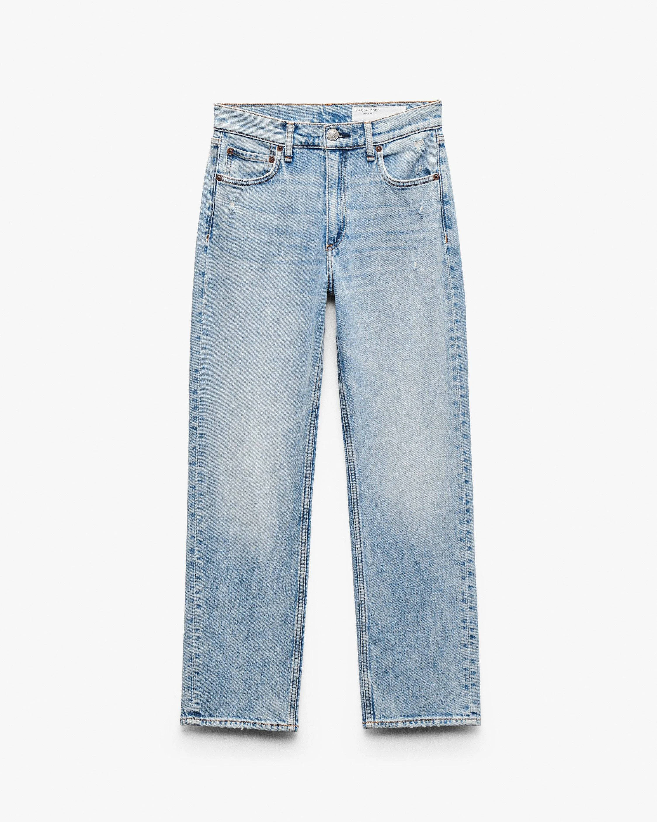 Introducing The Harlow, an impossibly cool straight-leg jean. This mid-rise style is fitted through the thigh and is crafted from our Vintage Stretch denim, which looks rigid but is finished with a touch of stretch. This ankle length jean can be styled with just about anything to look amazing. Zero effort required. Available in Lou, a light indigo wash. Size & Fit • Mid rise straight fit • Ankle length • Size 26: 11" rise, 28" inseam, 15.25" leg opening Features & Details • 99% cotton, 1% elastane • Comfort stretch fabric, light indigo wash • Machine wash cold inside out, do not use bleach • Hang to dry, do not iron • Indigo may bleed • Zip fly closure • Clean hem with heavy grinding • Five-pocket silhouette • Imported Product ID: RJ3625F1VLO
