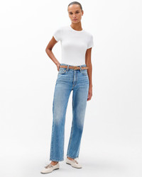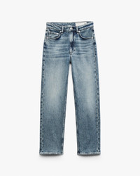 The Harlow. Impossibly cool straight-leg jeans that are mid-rise, fitted through the thighs, and cropped at the ankles. Crafted from our Vintage Stretch denim for a broken-in look & feel with a comfortable touch of stretch. In Amity, a medium indigo wash. Size & Fit • Mid-rise • Straight fit, ankle-length • Fits true to size • Size 26: 11" rise, 28.5" inseam, 15.25" leg opening • Model is 5'9" wearing size 24 Features & Details • 99% cotton, 1% elastane • Vintage Stretch Denim in Amity, a medium indigo wash • Machine wash cold inside out on delicate & lay flat to dry • Color may bleed • Signature dagger buttons & branded washer rivets • Zip fly with button closure • Five-pocket silhouette • Imported Product ID: RJ3425F1VAM