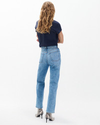 The Harlow. Impossibly cool straight-leg jeans that are mid-rise and fitted through the thighs with a perfect, full length. Crafted from our Vintage Stretch denim for a broken-in look & feel with a comfortable touch of stretch. In Monterosso, a light-medium indigo wash. Size & Fit • Mid-rise • Straight fit, full-length • Fits true to size • Size 26: 11" rise, 32" inseam, 16" leg opening • Model is 5'9.5" wearing size 24 Features & Details • 99% cotton, 1% elastane • Vintage Stretch Denim in Monterosso, a light-medium indigo wash • Machine wash cold inside out on delicate & lay flat to dry • Color may bleed • Signature dagger buttons & branded washer rivets • Zip fly with button closure • Five-pocket silhouette • Imported Product ID: RJ3425F1LMO