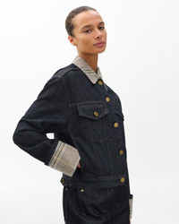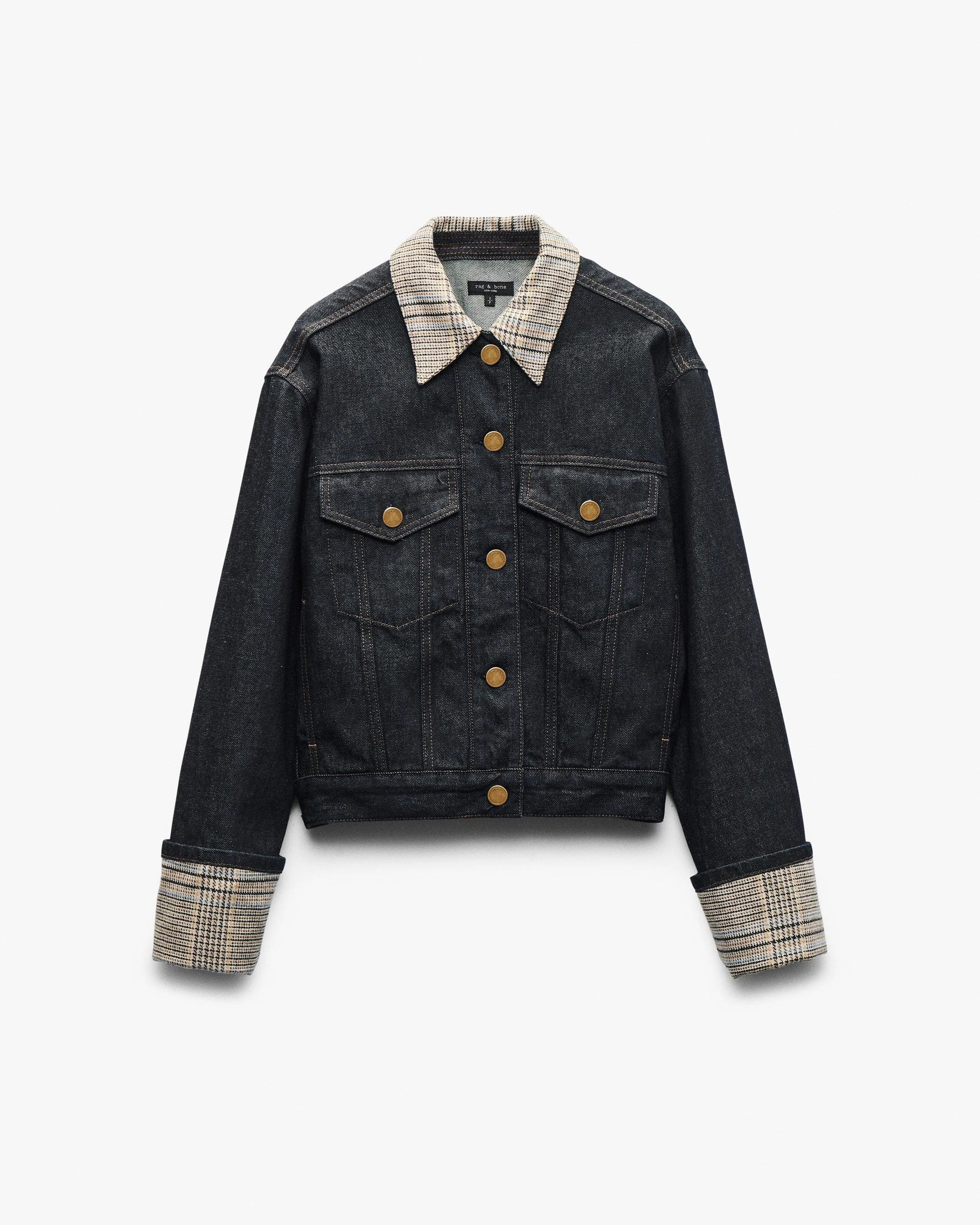 Cuffing season. This structured denim jacket plays by its own rules. Sewn-down cuffs and a point collar show off the unexpected: an Italian-milled heritage wool plaid that stands in stark contrast to the body's inky dark wash. Wear it over tailored trousers or the matching Shea Straight Jeans for a twist on double denim. It’s tradition. With a little attitude. Size & Fit • Cropped fit • Fits true to size • Size Small: Body length 21.75", chest 40.35", sweep 35.5" • Model is 5'9" wearing size small Features & Details • Self: 100% cotton • Combo: 37% acryclic, 31% wool, 21% polyester, 6% polyammide, 3% other • Dry clean only • rag & bone branded button at center front, pockets & cuffs • Side entry pockets & chest pockets • Button closure • Imported Product ID: RJ1025FORMR