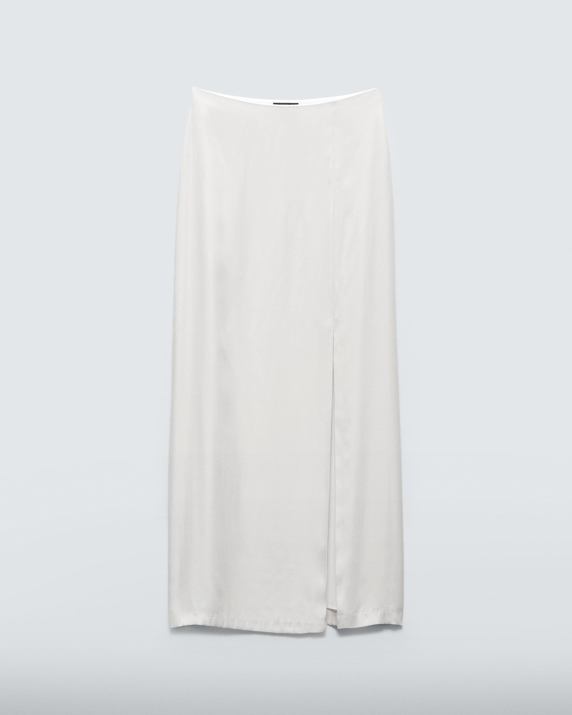 The Ilana. A versatile hero piece made in a lustruous silk-blend. This maxi skirt has a classic straight fit that hits at the waist. You can RSVP yes now. Size & Fit Fits true to size, mid rise Size 4: 29 1/2" waist, 41" front length, 42 1/2" sweep Model is 5'11" wearing a size 2 Features & Details Body: 55% Silk 45% Rayon Lining: 100% PolyesterDry clean only Invisible zipper, fully lined Zipper closure at side seam Imported Product ID: WAW24SB0092809