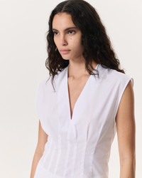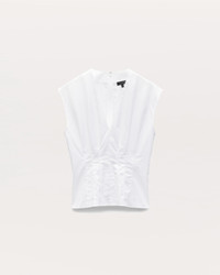 The kind of effortless yet elevated style you'll wear all season long. This unlined, ultra-feminine top is tailored for a slim fit from lightweight cotton poplin. With an A-line silhouette and cinched waist, it's a breezy, figure-flattering separate made for any warm-weather occasion. Size & Fit Slim fit Size 4: Back length 21 1/2", chest 33", sweep 37" Model is 5'10" wearing size 2 Features & Details 100% Cotton Machine wash cold with like colors, only non-chlorine bleach when needed, tumble dry low, low iron if needed Invisible zipper at center back Unlined Imported Product ID: WAW25SA0387638