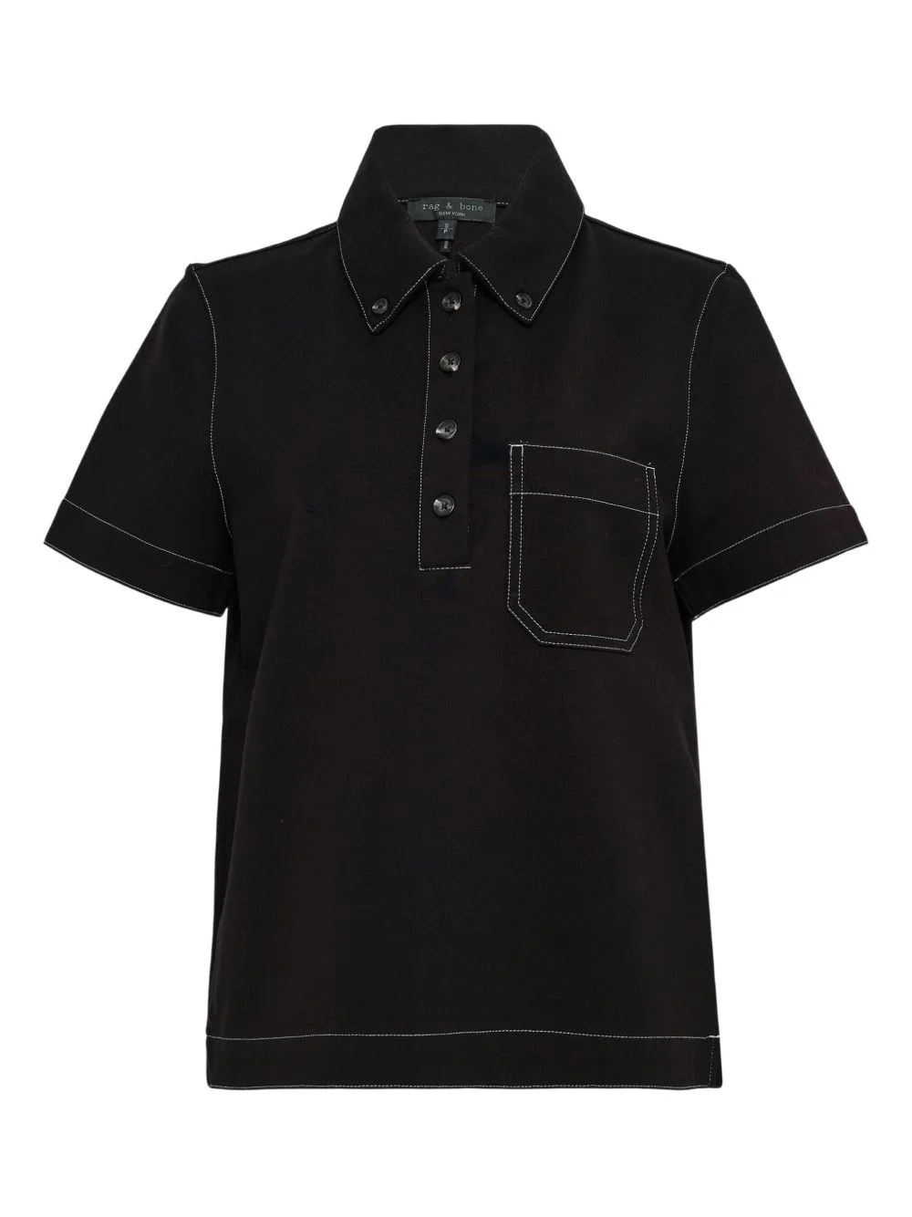 Irina contrast-stitch polo shirt Highlights - Black - Contrast-stitching - Chest-pocket - Button-fastening - Short-sleeves - Pointed-collar Imported Composition Fabric 96%, Elastane 4% Washing instructions Machine Wash
