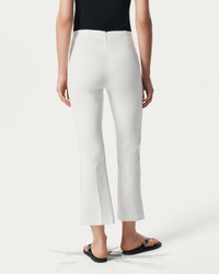 A new take on classic tailoring. These streamlined kick flare pants are cut entirely from our bestselling ponte fabric, a stretch knit which balances structure and ease for around-the-clock polish at work and beyond. An elastic waistband with a hidden zipper ensures they're as comfortable as they are sophisticated. And an added bonus? The trousers are machine washable, making them an easy choice for any occasion. This style runs large, so for the closest fit, consider sizing down. Size & Fit • Mid rise • Pull-on pant with a cropped leg and kick flare hem • Fits large to size. Consider sizing down for a closer fit. • Size Small: 10.5" rise | 27" inseam | 19" leg opening • Model is 5'11" wearing size small Features & Details • 66% viscose, 30% nylon, 4% elastane • Pull-on elastic waistband • Machine wash cold on delicate & tumble dry low or dry clean • Imported Product ID: WAC25S7003D803