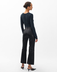 All-day edge. These mid-rise kick flare pants are cut from buttery lambskin. An elastic waistband and hidden zip at the back give them the look and feel of an effortless pull-on style. Equal parts comfortable and sophisticated, they're perfect for an around-the-clock polished look. Size & Fit • Mid-rise pull on pant with slim leg and kick flare hem • Fits true to size • Size 4: 10.5" rise, 27.5" inseam, 20" leg opening • Model is 5'9" wearing size 2 Features & Details • Body: 100% lamb leather • Backing: 97% cotton, 3% elastane • Professional leather clean only • Zip fly with hook and bar closure • Elastic waistband • Imported Product ID: RA7A25F7MST