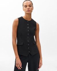 For a new take on classic tailoring, we cut this streamlined button-up vest from our bestselling ponte fabric, a stretch knit which balances structure and ease for around-the-clock polish at work and beyond. The lined style's slim, hip-length silhouette works just as well with jeans as it does with leather pants and suiting trousers. An added bonus? It's machine washable, making it an easy choice for any occasion. Size & Fit • Slim fit • Fits true to size • Size 4: Body length 25.25", chest 34.5", sweep 38.5" • Model is 5'9" wearing size 2 Features & Details • 66% viscose, 30% nylon, 4% elastane • Machine wash cold on delicate & tumble dry low or dry clean • Faux horn buttons • Flat front pockets • Front button closure • Imported Product ID: RE8925FV1PW