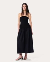 A modern take on the strapless dress. This slim-fit style combines a cotton poplin skirt with a figure-flattering top sculpted from ponte, our bestselling stretch knit which balances structure and ease for a polished look around the clock. An added bonus? The dress is machine washable, making it an easy choice for any occasion. Size & Fit • Strapless slim fit dress with poplin skirt • Fits true to size • Size Small: body length 46.5" | chest 30.25" | sweep 67" • Model is 5'11" wearing size small Features & Details • Top: 66% viscose, 30% nylon, 4% elastane • Skirt: 100% cotton • Cotton poplin combo fabric • Machine wash cold on delicate & tumble dry low or dry clean • Imported Product ID: WAC25P3017D817