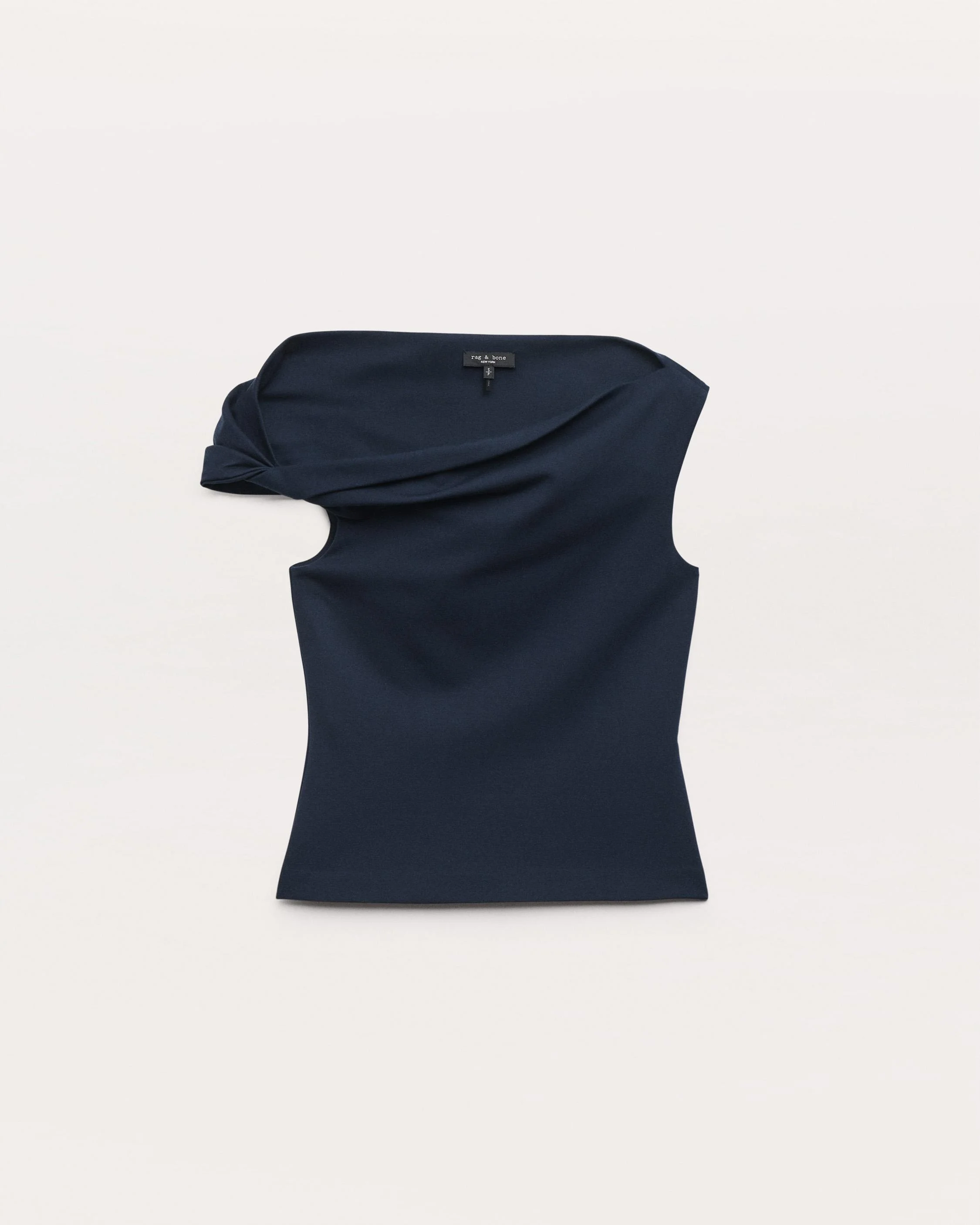 Your new favorite sleeveless top. Tailored from our bestselling ponte fabric, a stretch knit which balances structure and ease for a polished look through long days and even longer nights. This form-fitting yet comfortable style features a unique twist detail at the sleeve worn just off the shoulder. Another bonus? The top is machine washable, making it an effortless choice for any occasion. Size & Fit • Fitted one shoulder top • Fits true to size • Size Small: body length 21" | chest 31.5" | sweep 33" Features & Details • 66% viscose, 30% nylon, 4% elastane • Machine wash cold on delicate & lay flat to dry or dry clean • Imported Product ID: RE7K25FT1PW