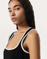 Game on. This tank is tailored from our bestselling ponte fabric, a stretch knit which balances structure and ease for a polished look on or off the court. The slim fit and curved contrast trims give it a sleek & sporty feel. An added bonus? The sleeveless top is machine washable, making it a mainstay in your warm-weather rotation. Size & Fit • Slim fit • Fits true to size • Size Small: Body length 20.5", chest 31", sweep 30.5" • Model is 5'9" wearing size small Features & Details • 66% viscose, 30% nylon, 4% elastane • Machine wash cold on delicate & tumble dry low or dry clean • Contrasting binding • Imported Product ID: WAC25PT010D810