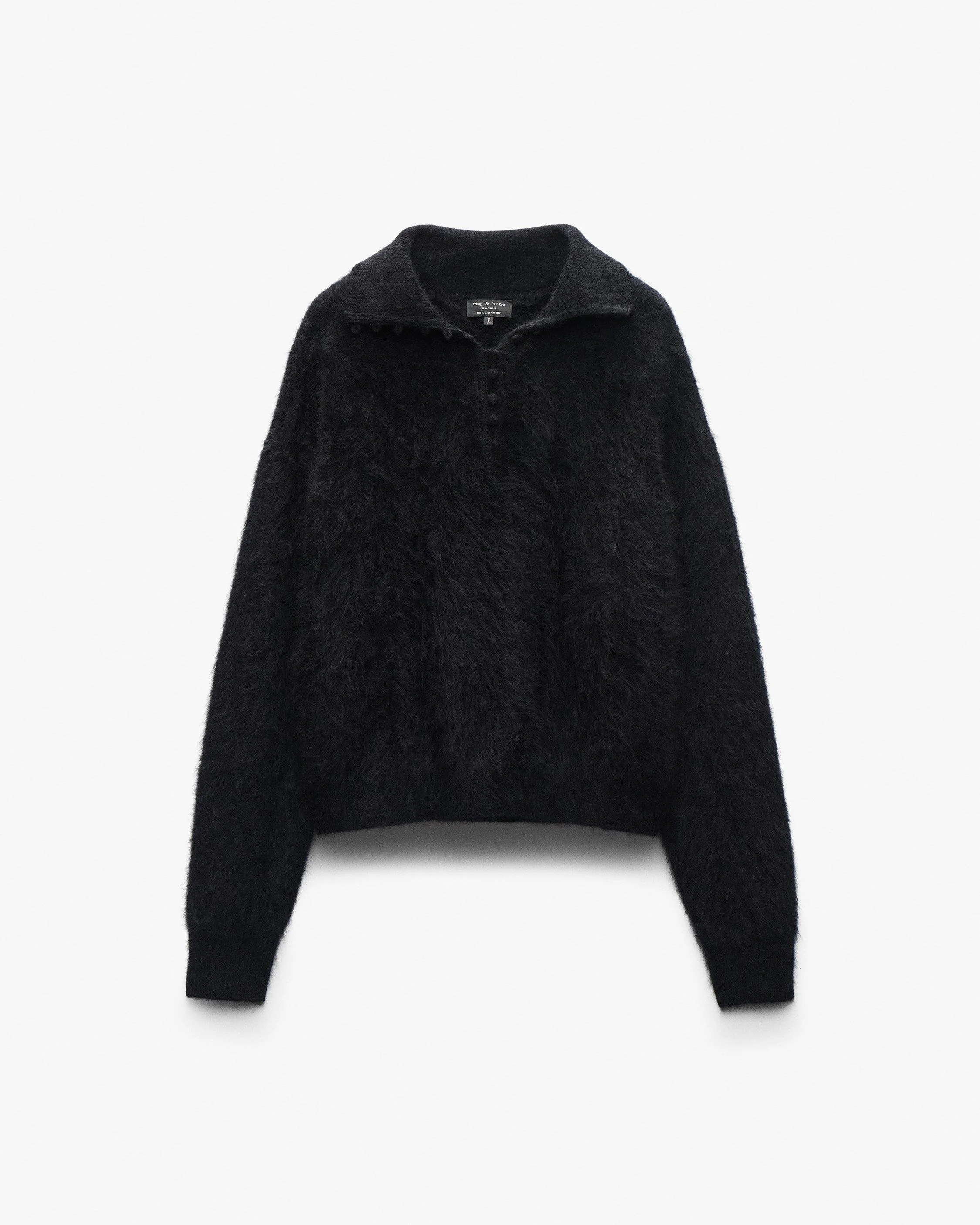 Dreamy textures. This cashmere cardigan is cut for a relaxed, oversized fit. Fabric-covered front buttons can be closed to create a mockneck. Falling to the hip, it features contrasting embroidered logo detail features to one side. Consider letting this style breathe between wears to ensure its delicate, ultra-soft yarns feel just as lofty every time. Size & Fit • Oversized fit • Fits large to size. Consider sizing down for a closer fit. • Size small: Body length 21", chest 45", sweep 39.5", sleeve length 19.5" • Model is 5'10" wearing size small Features & Details • 100% cashmere • Dry clean only • Fabric covered metal buttons at center front neck • Imported Product ID: RG6325F6MCA