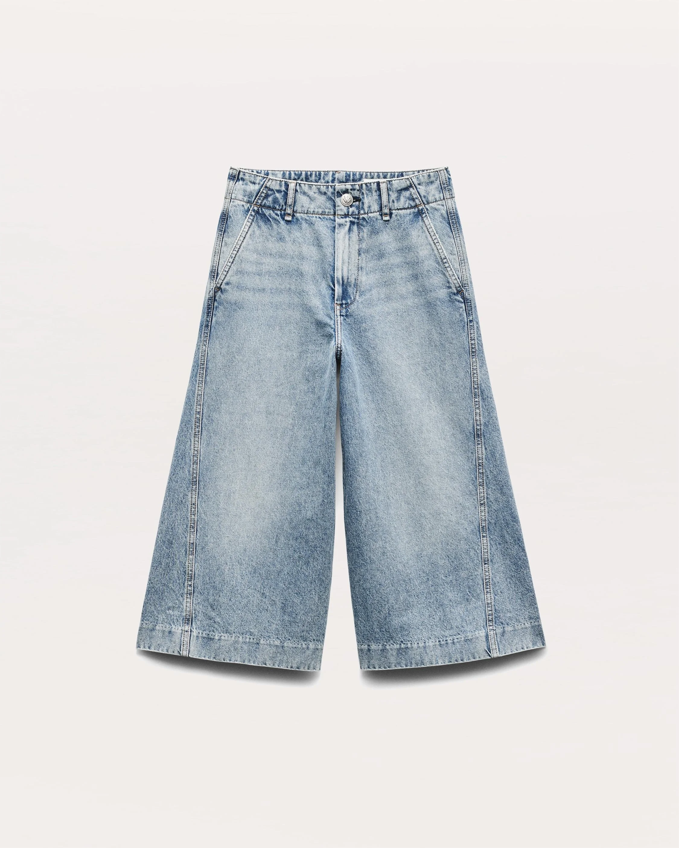 The Tailored Jamie. A dressier version of our beloved high-rise culottes, with a wide leg that hits just below the knee, front slant pockets, and back welt pockets. Crafted from Lightweight Rigid non-stretch denim that provides structure, but breaks in over time for a soft and comfortable feel. In Pacific, a light-medium indigo wash. Size & Fit High-rise, culotte Size 26: 12" front rise, 20" inseam, 24 3/4" leg opening Model is 5'10" wearing size 25 Features & Details 100% Cotton Lightweight Rigid Denim in Pacific, a light-medium indigo wash Machine wash cold inside out with like colors, gentle cycle, do not use bleach, hang to dry, low iron if need, color may transfer Signature dagger button with a zipper fly and metal rivets Five-pocket silhouette Imported Product ID: WDD25S3011RGPA