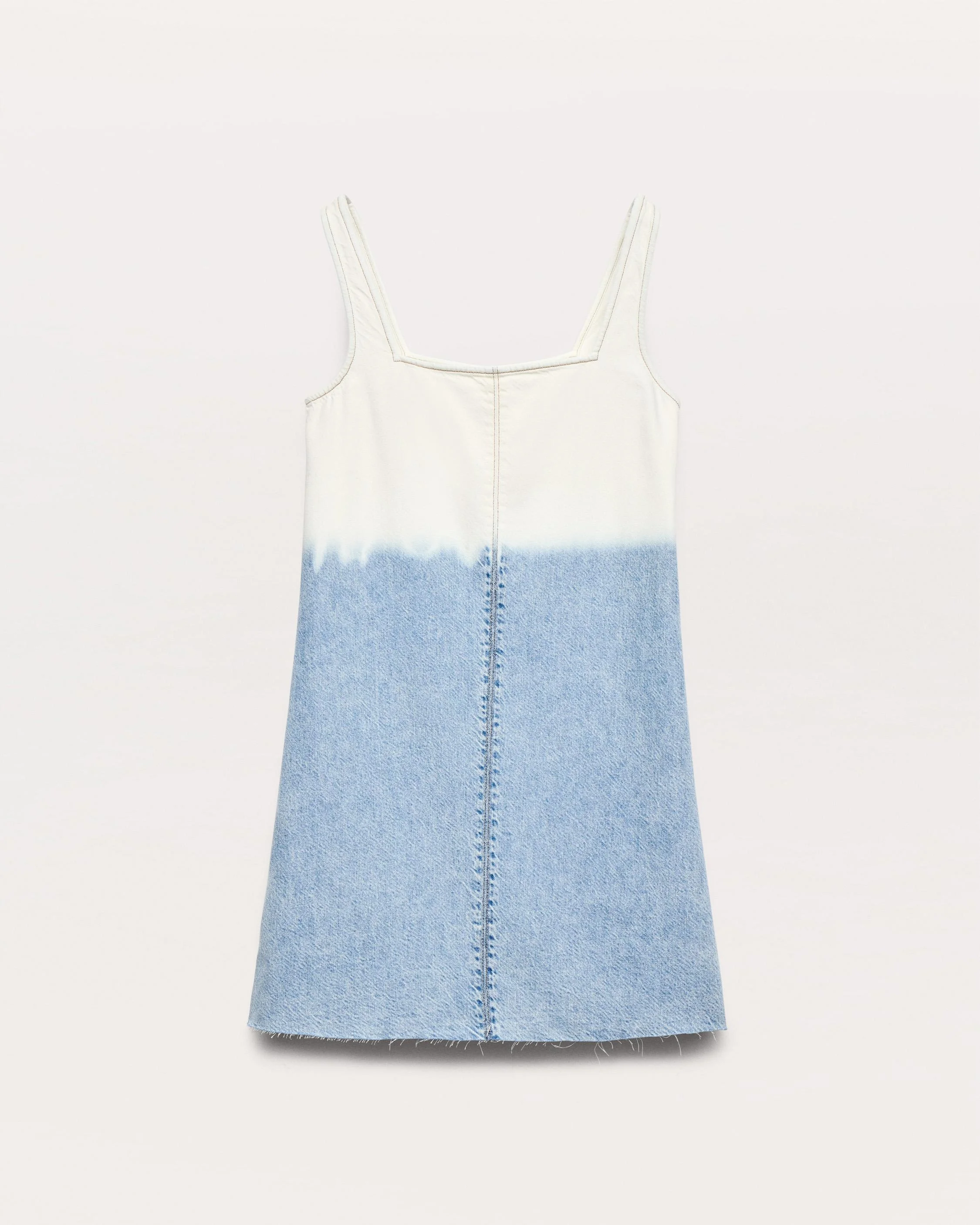 Summer in a mini dress. This sleeveless square-neck style is cut for an A-line silhouette from Featherweight, our supremely soft and super light denim that feels airy and effortless. In Bleach Stripe, a light indigo wash that's bleached at the bodice to create a colorblock effect with a fluid, wave-like border at the waist. Size & Fit • A-line square-neck mini dress • Fits true to size • Size Small: Front length 34", chest 36.5", sweep 44.75" • Model is 5'11" wearing size small Features & Details • 64% cotton, 36% lyocell • Machine wash • Zip with a hook-and-eye closure • Imported Product ID: WDD25P3000FWBS