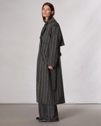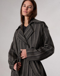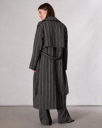 The classic trench coat, updated in Italian-woven virgin wool with a subtle herringbone stripe pattern. It's finished with quintessential hallmarks like shoulder epaulettes and storm shields, while drop sleeves and a removable, waist-cinching belt define its streamlined silhouette. Size & Fit Fits true to size, hits at the knee Size Small: Front length 48 3/4", back length 47 3/4", chest 47 1/2", sleeve length 32 1/2" Model is 5'8" wearing a size small Features & Details 100% Virgin Wool Lining and pocketing: 55% Polyester 45% Viscose Dry clean only Self waist belt, half lined Hip welt pockets Imported Product ID: WAW24H2006RI06