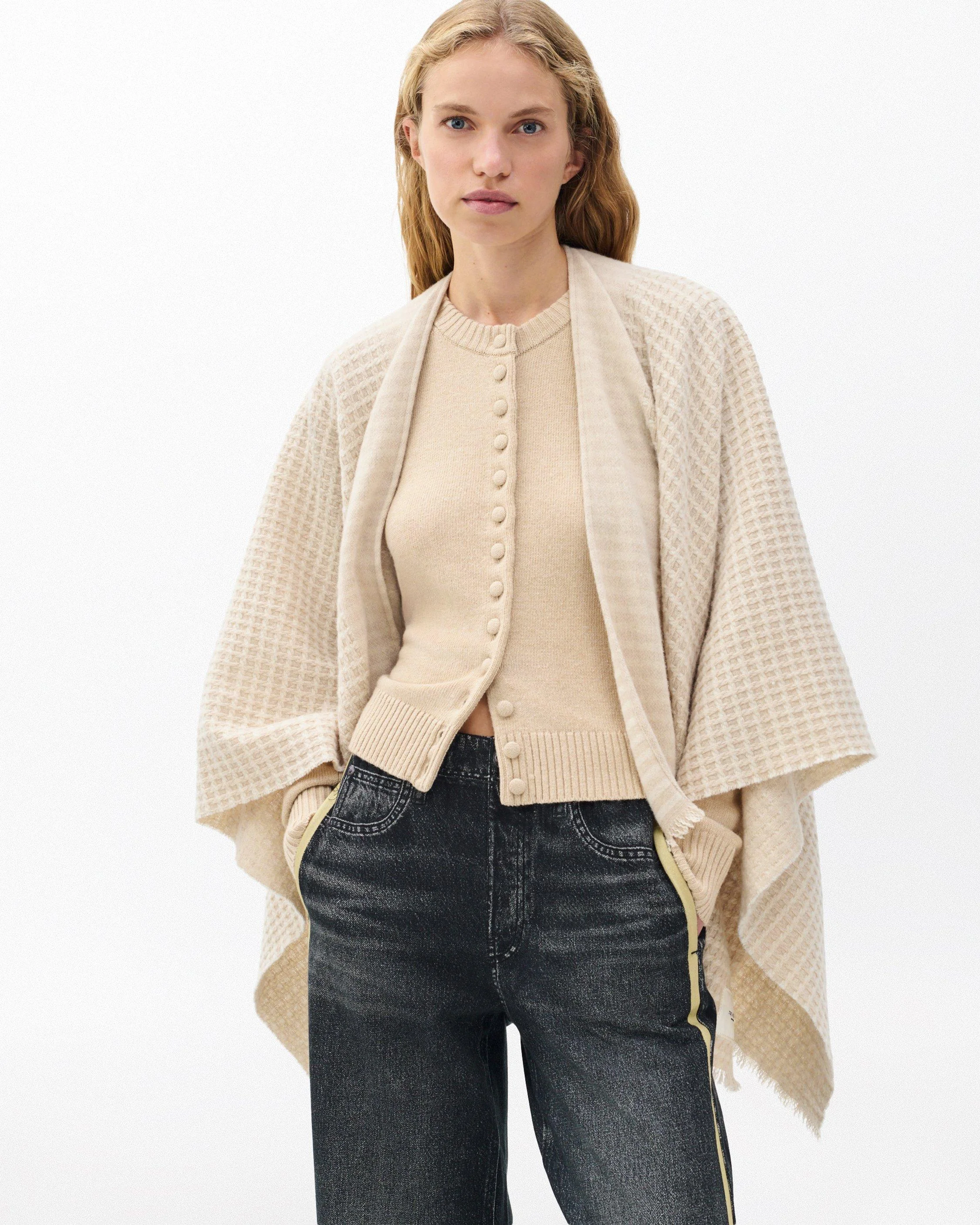 Grab it just in case. Crafted in Italy, this wool poncho features our new waffle-knit texture for a cozy, soft feel. A chic layer for any look, this two-tone style features raw edges for further detail. Size & Fit • Dimensions: 130 x 130 cm Features & Details • 90% recycled wool, 10% wool • Dry clean only • Made in Italy Product ID: RL2125FX21G