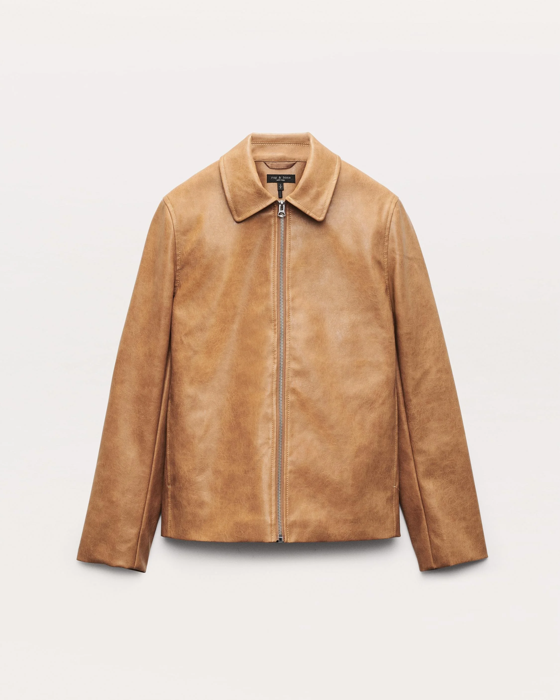 A carefree jacket with character. Nodding to vintage styles, this understated layer is crafted from weighty faux leather that looks subtly worn in, but feels super soft. The silky lining ensures it slips on and off with ease. Pair with shorts for summer or denim for any season. Size & Fit • Classic fit, hits at the hip • Fits true to size • Size Small: Front length 25.75", center back 24.75", chest 41", sleeve length 33" • Model is 5'9" wearing size small Features & Details • 100% polyester with 100% polyurethane coating • Hand wash cold inside out & lay flat to dry • Do not dry clean • Exposed metal zipper at center front • Fully lined • On seam pockets • Front zip closure • Imported Product ID: WAW25P2001LE01