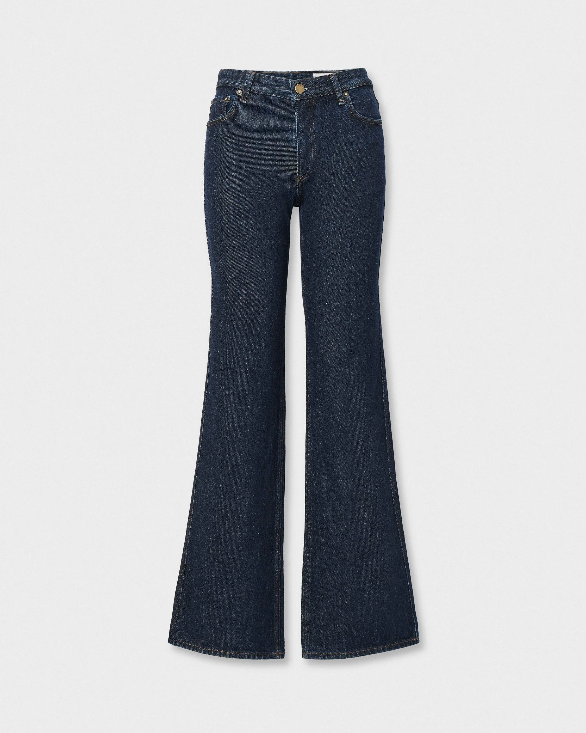 The Josie. Our new modern, expressive take on a retro jean. Featuring a low rise and fitted thigh, with a relaxed, full-length leg that opens in a wide flare. Crafted from Lightweight Rigid non-stretch denim that provides structure, but breaks in over time for a soft and comfortable feel. In Dark Rinse, an inky indigo wash. Size & Fit • Low-rise • Full length • Fitted thigh with a relaxed leg and wide flare • Fits true to size • Size 26: Rise 9.25", inseam 34", leg opening 25.5" • Model is 5'9" wearing size 23 Features & Details • 100% cotton • Lightweight Rigid Denim in Dark Rinse, an inky indigo wash • Zip fly with a signature shank button closure • Metal rivets • Five-pocket jean • Machine wash cold inside out on delicate & lay flat to dry • Color may transfer • Imported Product ID: RJ6E26P1RDR