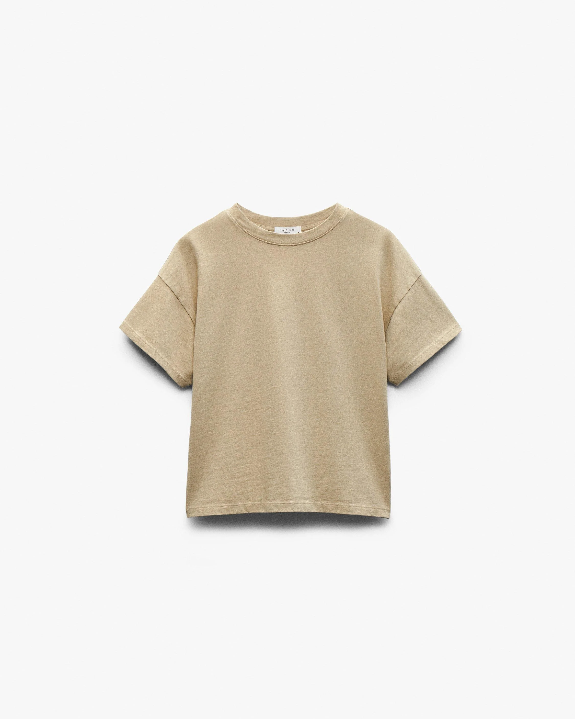Proportions perfected. Our new short-sleeve tee is cut from heavier cotton jersey in a modern boxy fit. It plays well with everything in your closet: tailored trousers for contrast, denim for off-duty ease. Size & Fit • Boxy fit • Fits true to size • Size Small: Body length 21.5", chest 39", sweep 36.5", sleeve length 15" • Model is 5'11" wearing size small Features & Details • 100% cotton • Machine wash cold on delicate & tumble dry low or dry clean • Made in Peru Product ID: RE8625FT3KW