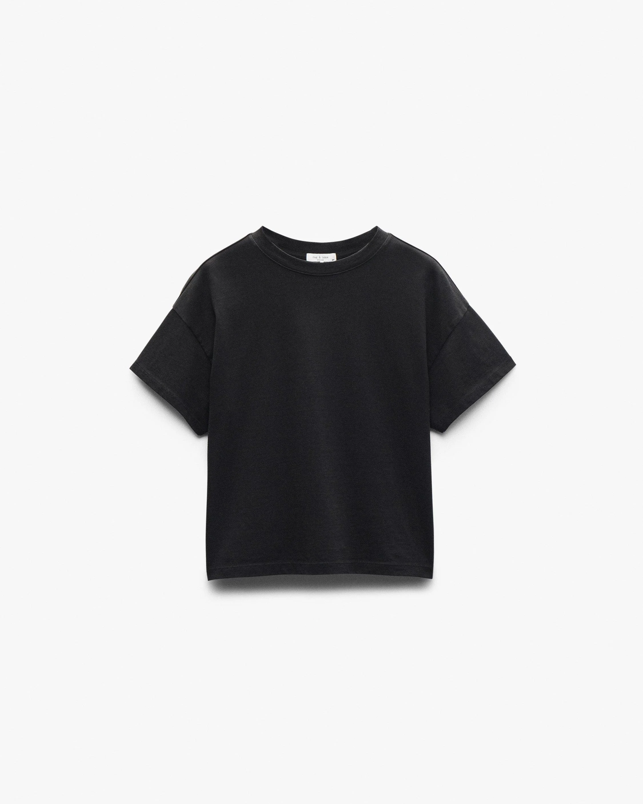 Proportions perfected. Our new short-sleeve tee is cut from heavier cotton jersey in a modern boxy fit. It plays well with everything in your closet: tailored trousers for contrast, denim for off-duty ease. Size & Fit • Boxy fit • Fits true to size • Size Small: Body length 21.5", chest 39", sweep 36.5", sleeve length 15" • Model is 5'11" wearing size small Features & Details • 100% cotton • Machine wash cold on delicate & tumble dry low or dry clean • Made in Peru Product ID: RE8625FT3KW