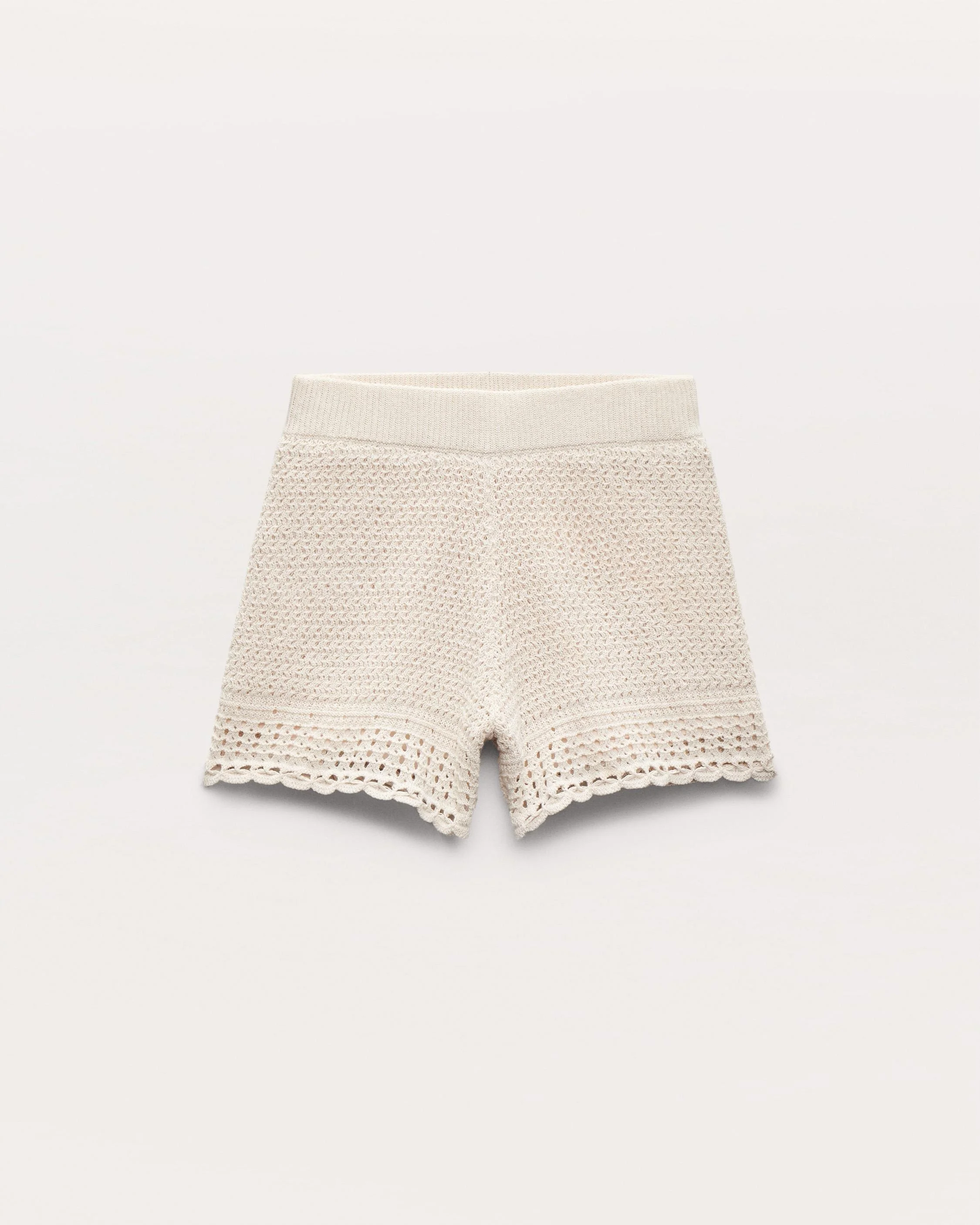 An elevated take on a summer staple. Crafted with a relaxed fit from an open-knit blend of cotton and linen, these fully lined pull-on shorts are light, breathable, and effortless. Create a vacation-ready look with the Khloe Open-Knit Bralette and Khloe Striped Open-Knit Cardigan, a matching set with the Khloe Open-Knit Tee, or wear them with a cropped tee or silky shirt when out enjoying the season. Size & Fit • Relaxed fit • Fits true to size • Size Small: 3.5" inseam | front rise 12.25" | leg opening 22" • Model is 5'11" wearing size small Features & Details • 74% cotton, 26% linen • Pull-on elastic waistband • Side-seam pockets • Machine wash cold inside out on delicate & lay flat to dry • Do not dry clean • Imported Product ID: WAS25P022BR22