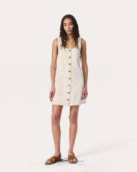 A throw-on-and-go mini dress made for warmer days. This button-up tank style is the perfect way to wear denim well into summer with its ultra-light Featherweight fabric cut in an easy, airy silhouette. In Ecru, a soft, warm white. Size & Fit • A-line scoop-neck mini dress • Fits true to size • Size 4: front length 34.25" | chest 35.25" | sweep 45" • Model is 5'9" wearing size 2 Features & Details • 64% cotton, 36% lyocell • Button front • Signature dagger tack buttons • Machine wash • Imported Product ID: WDD25P1522FWEC
