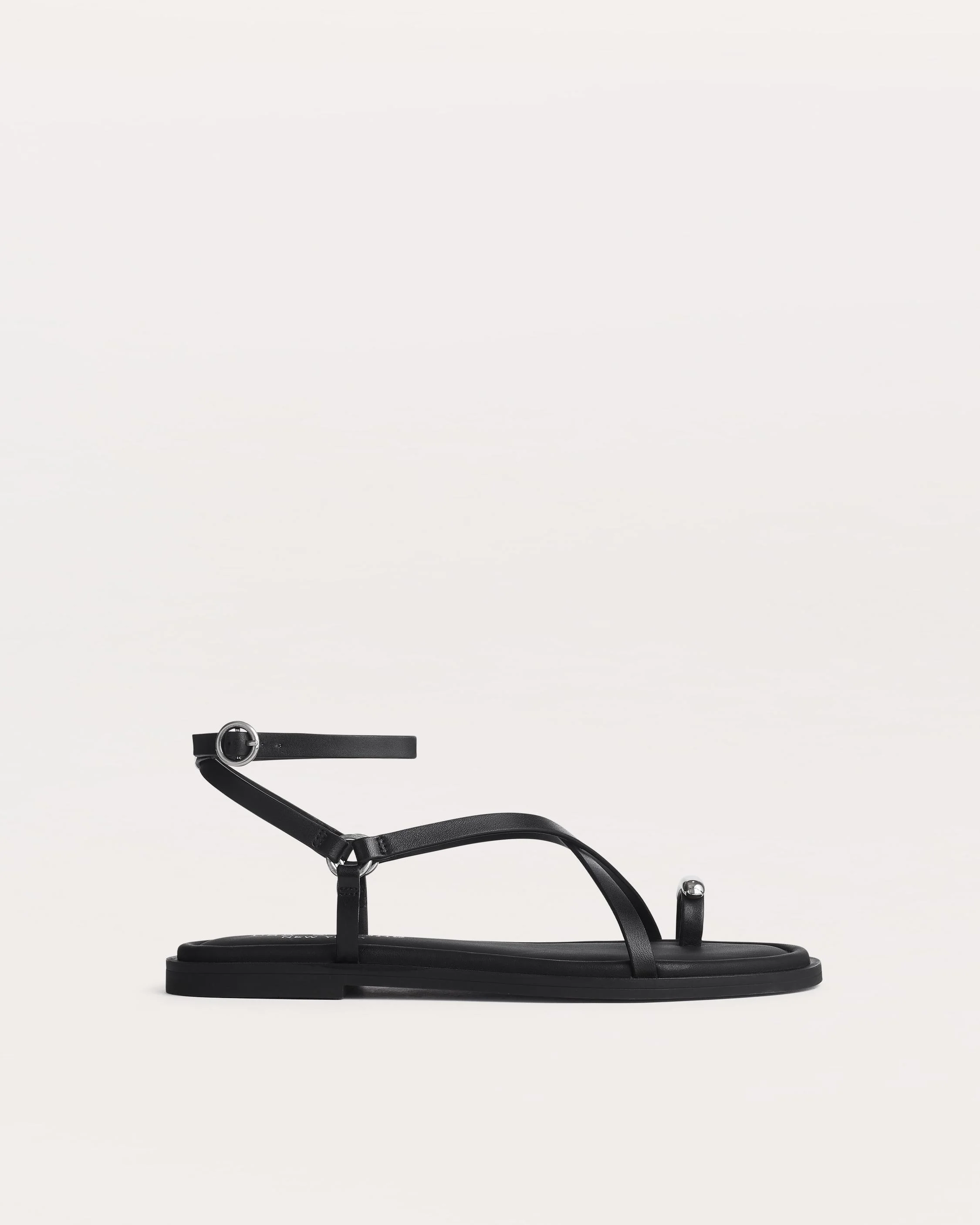 Strappy sandals with a downtown vibe. These versatile flats are crafted from smooth leather in bands that cross the foot and wrap up the ankle. They're finished with a metal-capped toe ring and feature our signature adjustable buckle. Inside the cushioned footbeds, you'll find dual-density antimicrobial foam insoles: OrthoLite© Lazy-Hybrid™ for custom-fit comfort, and OrthoLite© Recycled for stability and support. Size & Fit • 0.5" sole Features & Details • Upper: 100% leather • Lining: 100% sheep leather • Outsole: 100% TPU • Slip-on closure with straps that wrap up the ankle and fasten with an adjustable buckle • Metal cap detail at toe ring • Ortholite: Recycled sock foam • Based on the delicate nature of the materials, please handle with care • Imported Product ID: WFF25PF1011LE11