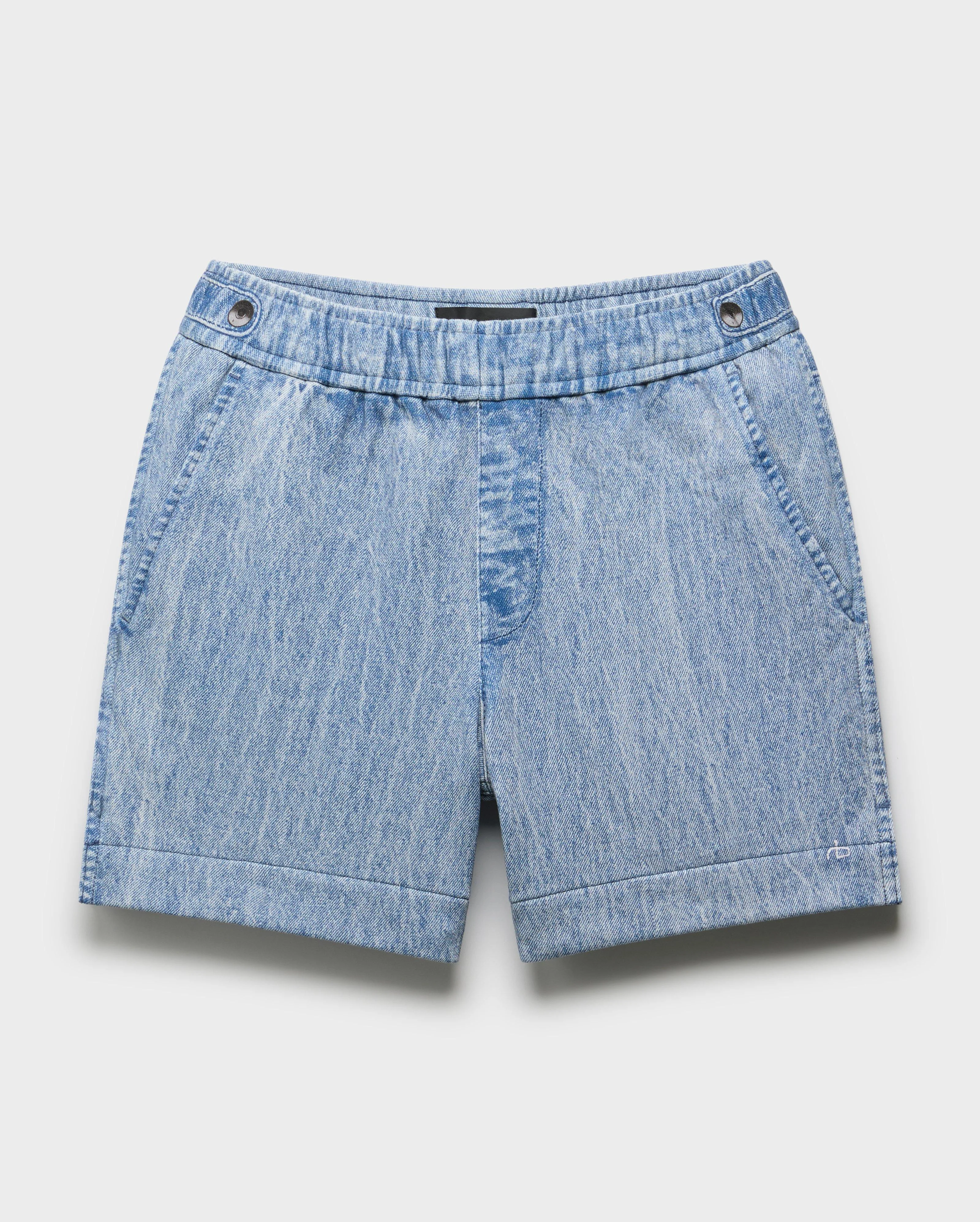 Riffing on retro jean shorts, this limited-edition pair only looks like a throwback, with soft cotton terry printed using our Miramar technique to resemble acid-wash denim. Their 5” inseam further nods to vintage, while the lightweight material and elastic waistband feel more like modern gym gear. Wear them with everything from tees & sweatshirts to blazers & button-ups. Whether you take them on or off the court is up to you. Size & Fit • Classic fit • Fits true to size • Size Medium: 32.5" waist, 12" front rise, 5" inseam, 24.5" leg opening • Female model is wearing size small Features & Details • 100% cotton • Miramar Terry with Acid Wash Print • Elasticated pull on waistband • Two front slash pockets and one back welt pocket • Machine wash cold inside out & lay flat to dry • Do not dry clean • Imported Product ID: RD7M25FMMCO