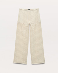 Easygoing beach pants. Reimagined entirely in airy open-knit mesh with an intricate, crochet-like design. It's finished with a drawstring waistband, side pockets, and a silky-soft lining to the length of mini shorts. Wear with an oversized button-up or double-down on its standout summer texture by pairing with the matching pants. Size & Fit • Wide-leg pant • Fits true to size • Size Small: 10.5" rise, 30.75" inseam, 22" leg opening • Model is 5'9" wearing size small Features & Details • Body: 100% polyester • Lining: 97% modal, 3% spandex • Machine wash cold on delicate & tumble dry low or dry clean • Mini-shorts-length jersey lining • Drawstring waistband • Side entry pockets • Imported Product ID: WAC25P70116R11