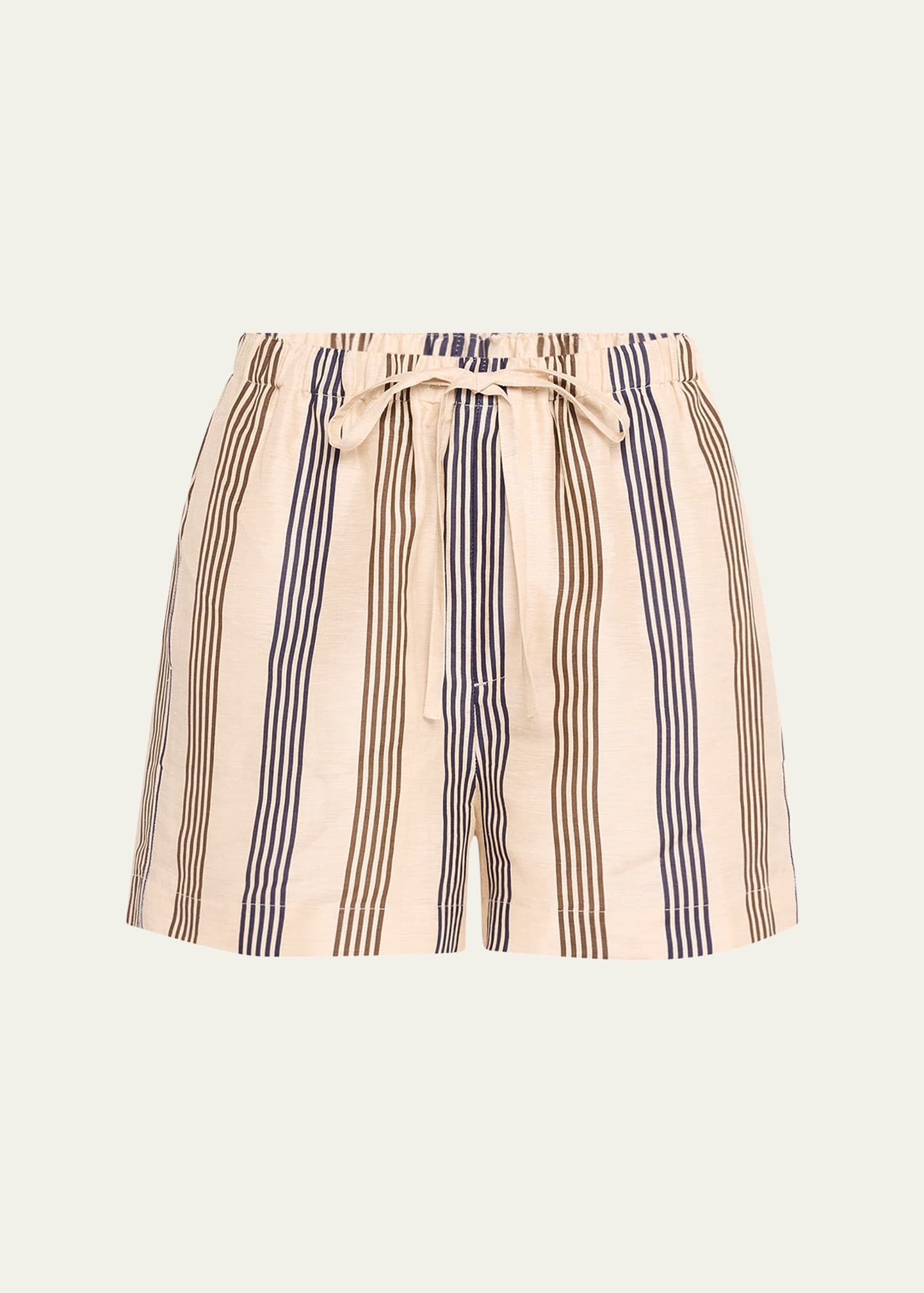 Rag & Bone "Logan" striped linen shorts Approx. 3.5" inseam High rise Drawstring waistband Four-pocket style Relaxed fit Pull-on style Linen/viscose/spandex Unlined Dry clean Imported Online Inquiries: BGS21_T6KQJ| Store Inquiries: #4998907