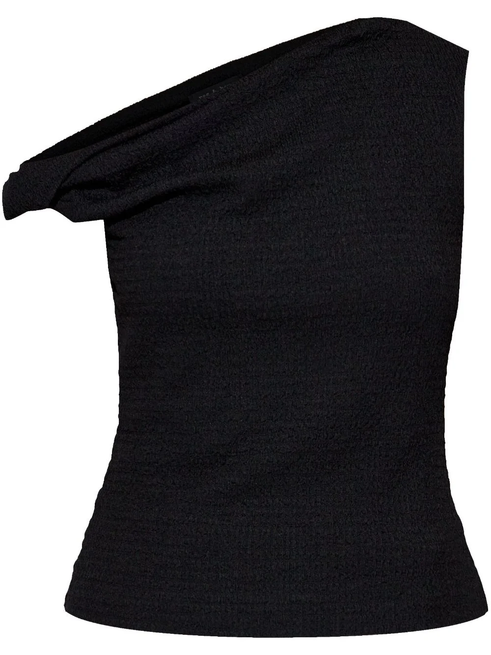 Lou blouse Highlights - Black - Plisse effect - One-shoulder - Off-shoulder - Straight hem Imported Composition Polyester 95%, Elastane 5%