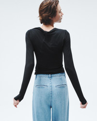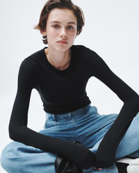 Timeless. Authentic. Iconic. One of the building blocks of a perfect wardrobe. This cropped and fitted slim long sleeve tee is woven in a Lyocell blend for a distinctly silky feel that makes this the perfect layering piece. Style with virtually anything in your closet. Size & Fit Slim fit Size Small: Center back length 21 1/4", chest 30", sweep 31", sleeve length 32 1/4" Model is 5'9" wearing a size small Features & Details 95% Modal, 5% Spandex Machine wash cold with like colors gentle cycle, do not bleach, lay flat to dry, cool iron if needed Signature railroad stitch detailing all over Made in China Product ID: WAC23HT040NH40