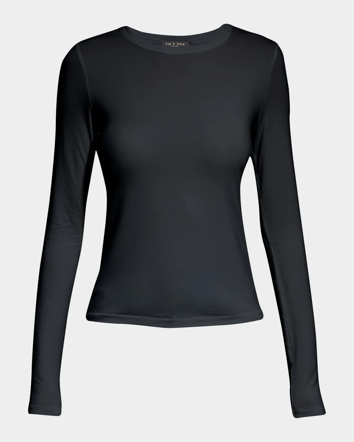 - Rag & Bone "Luca" long-sleeve tee in a soft, stretch modal - Crew neckline - Slim fit - Hem sits at the hip - Pullover style - Modal/spandex - Machine wash cold - Imported - Model is 5'10"/177cm.