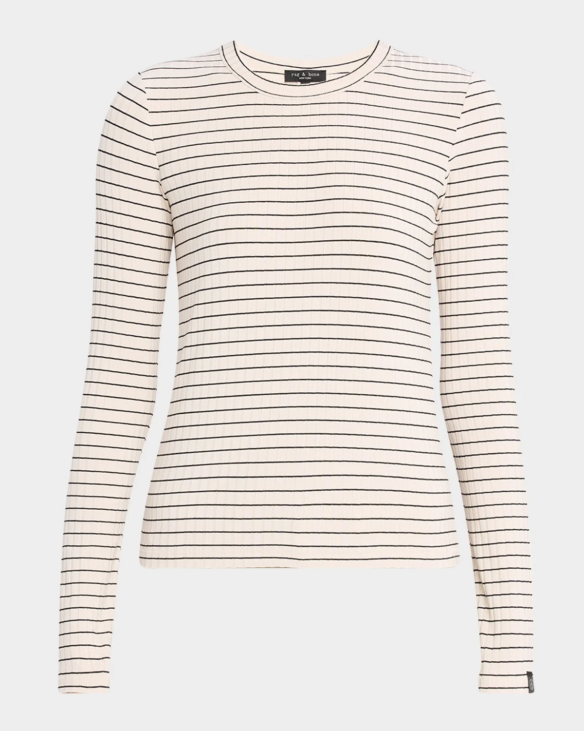 - Rag & Bone "Luca" striped rib-knit top - Crew neckline - Long sleeves - Easy fit - Hem sits at the hip - Pullover style - Modal/spandex - Machine wash cold - Imported