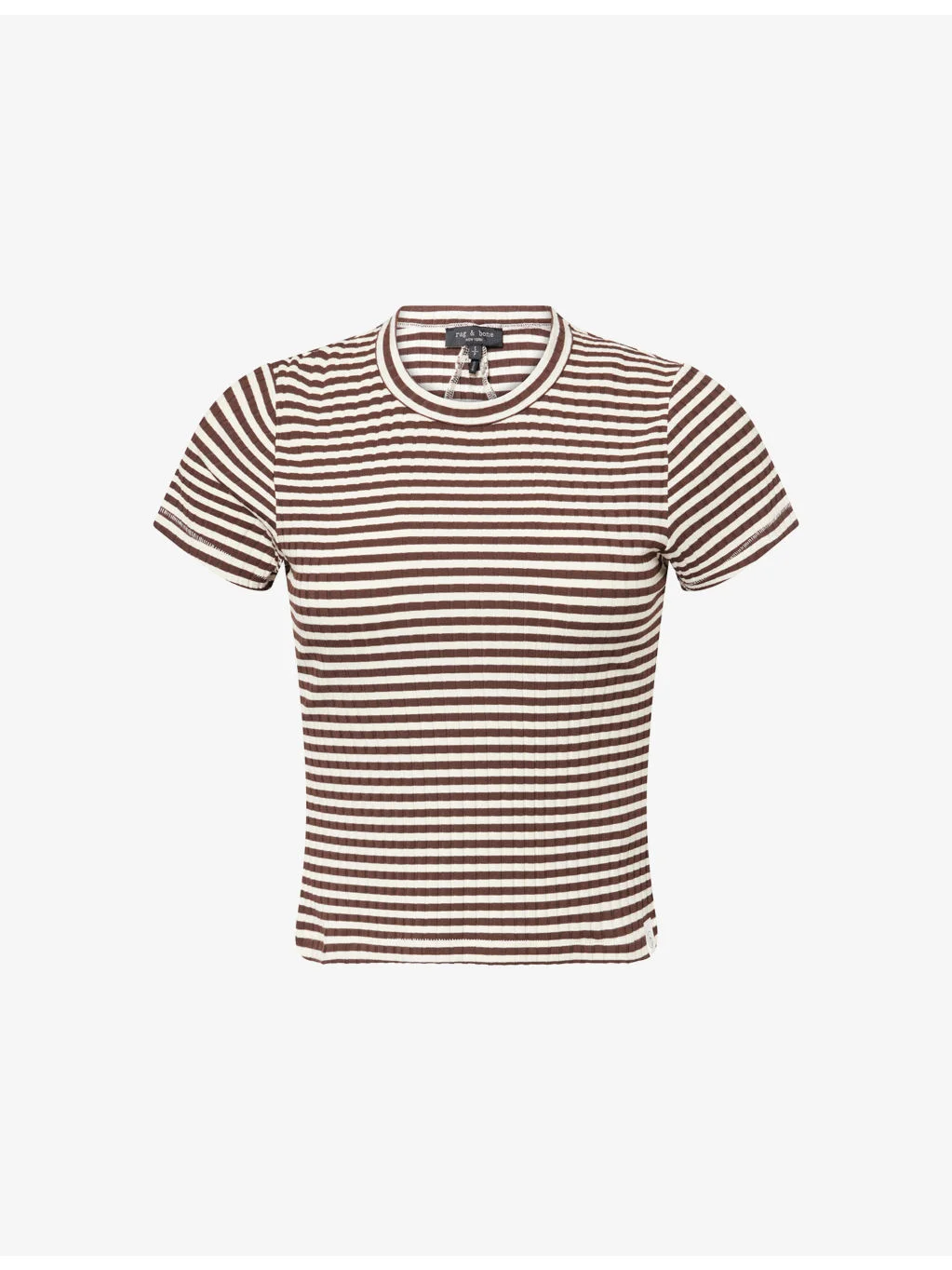 PRODUCT DETAILS - rag & bone stretch-woven T-shirt - 93% modal, 7% elastane - Slim fit, round-neck, short sleeves, all-over striped print, all-over ribbed - Machine wash at 30°C - True to size - Model is 5ft 10in/1.78m and wears a size small - Lightweight, stretchy Ref: R04501560