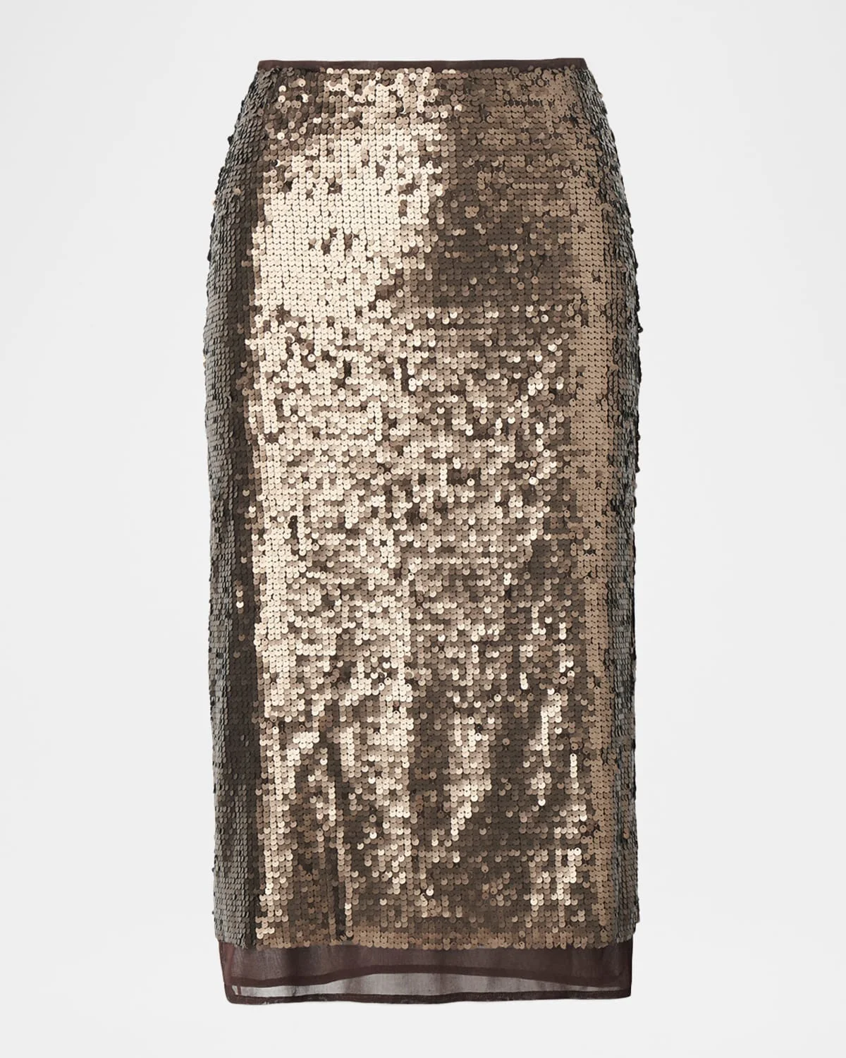 Rag amp; Bone "Lucy" midi skirt decorated with sparkling sequins for a shimmering finish. High rise Elasticized waistband Skirt falls straight from hip to hem Hem falls below the knee Pullon style Polyester/spandex Machine wash cold Imported