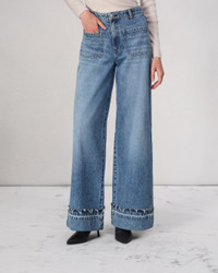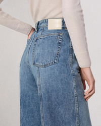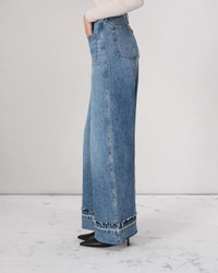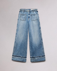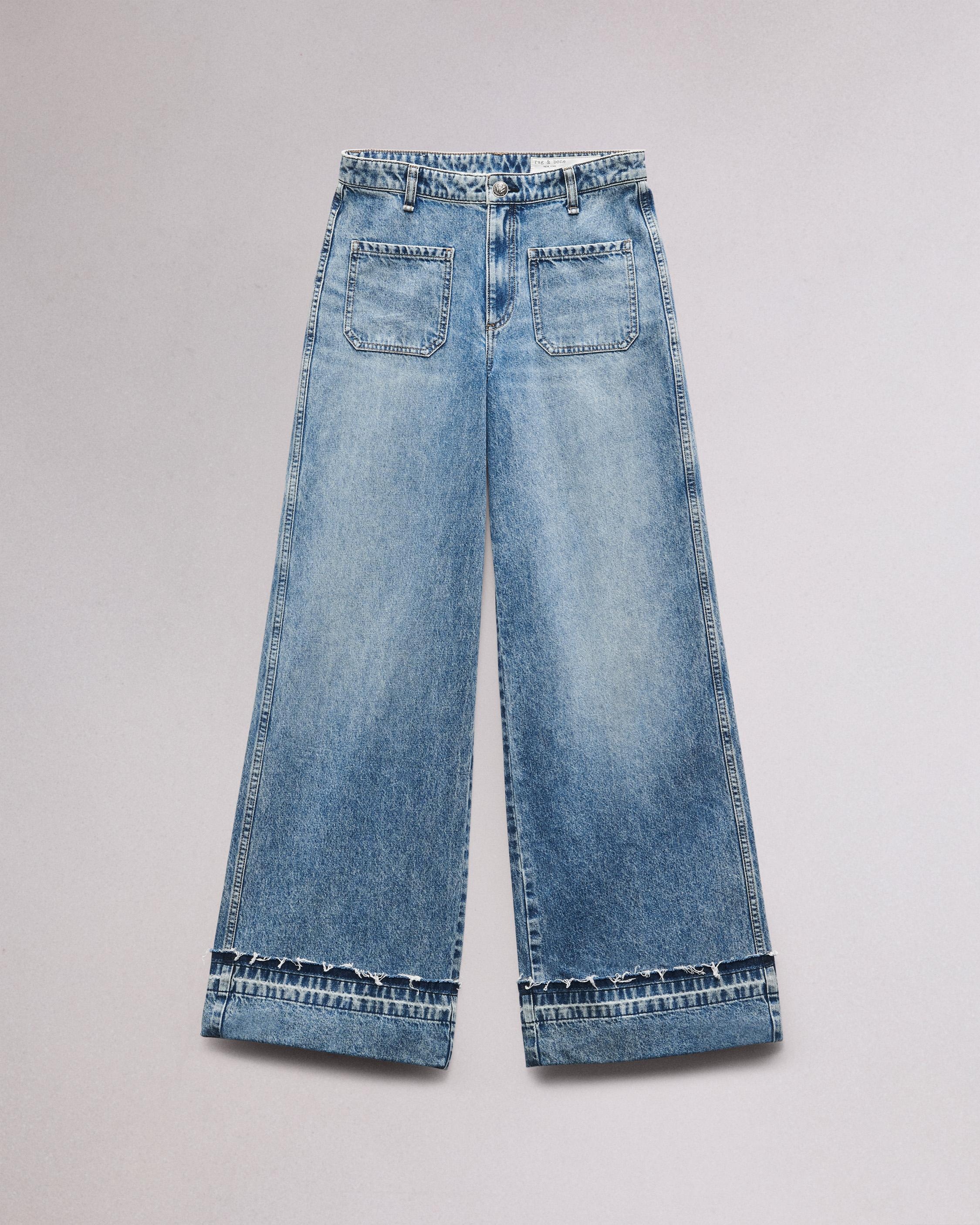 The Marina. Complete with patch pockets, our high-rise fit jean is cut with a wide leg with a turned down hem. Crafted in our Lightweight Rigid non-stretch denim that provides structure, but breaks in over time for a soft and comfortable feel. In Liliana, a light indigo wash. Size & Fit High-rise, wide leg, full length Size 26 : 11 1/2" front rise, 32 " inseam, 25 1/2" leg opening Model is 5'10.5" wearing a size 25 Features & Details 100% Cotton Lightweight rigid, light indigo wash Machine wash cold inside out with like colors, gentle cycle, do not use bleach or tumble dry, hang to dry, low iron if need, color may transfer. Signature dagger button at center front with a zipper fly Cuff with released hem Front patch and back pockets Imported Product ID: WDD24F2641F2LI