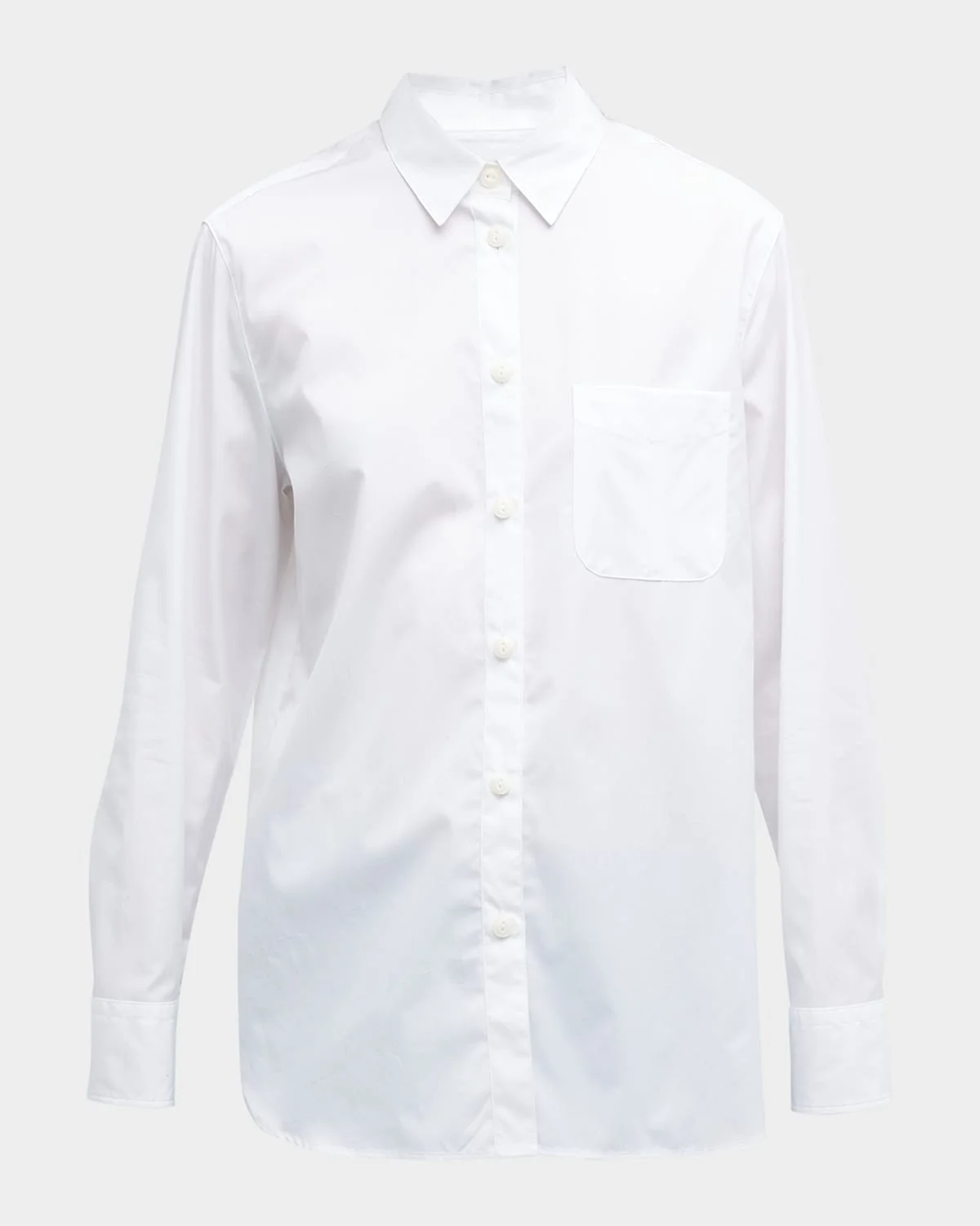 Rag amp; Bone "Maxine" buttonfront shirt featuring voluminous sleeves in a breathable, cottonpoplin Point collar Long sleeves; button cuffs Single front patch pocket Classic fit Hem falls to the hip Cotton Dry clean Imported