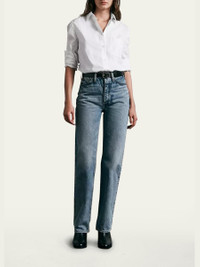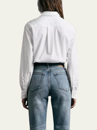 Rag & Bone "Maxine" button-front shirt featuring voluminous sleeves in a breathable, cotton-poplin Point collar Long sleeves; button cuffs Single front patch pocket Classic fit Hem falls to the hip Cotton Dry clean Imported Model is 5'10"/177cm. Online Inquiries: BGS21_T3UV7| Store Inquiries: #4377347