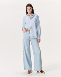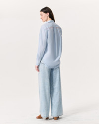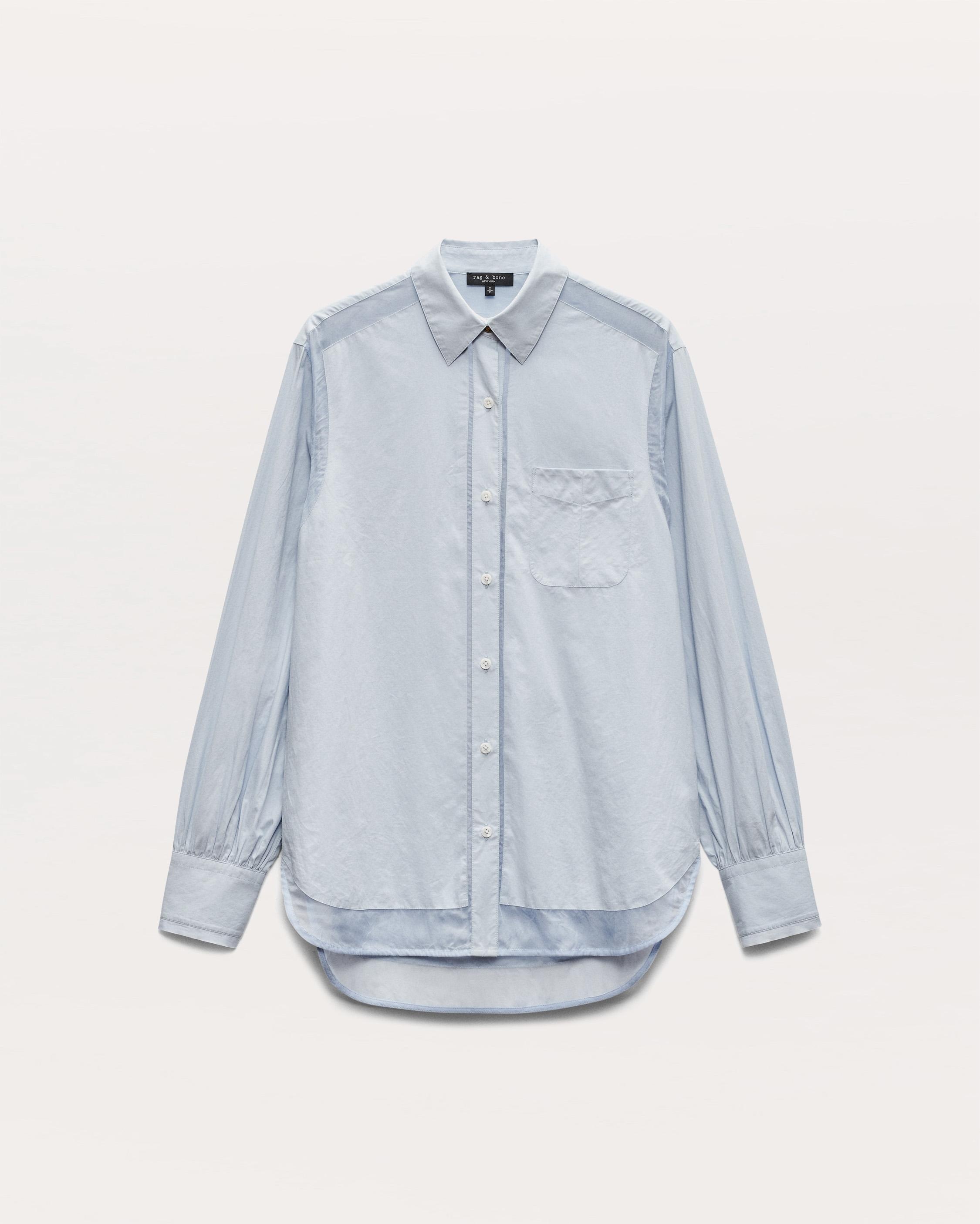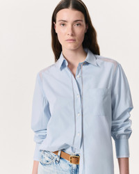 Tailored to perfection, this relaxed-fitting update to our iconic button-up shirt combines crisp cotton poplin with semi-sheer panels in fluid viscose organza. Size & Fit Relaxed fit button down Size Small: Back length 20 7/8", chest 42 3/4", sweep 44", sleeve length 32 1/2" Model is 5'10.5 wearing size small Features & Details Self: 100% Cotton Combo: 100% Viscose Machine wash cold with like colors, delicate cycle, do not bleach, tumble dry low, cool iron Cotton poplin fabric with organza combo Buttons at center front and cuffs Chest patch pocket Unlined Imported Product ID: WAW25SA0602560