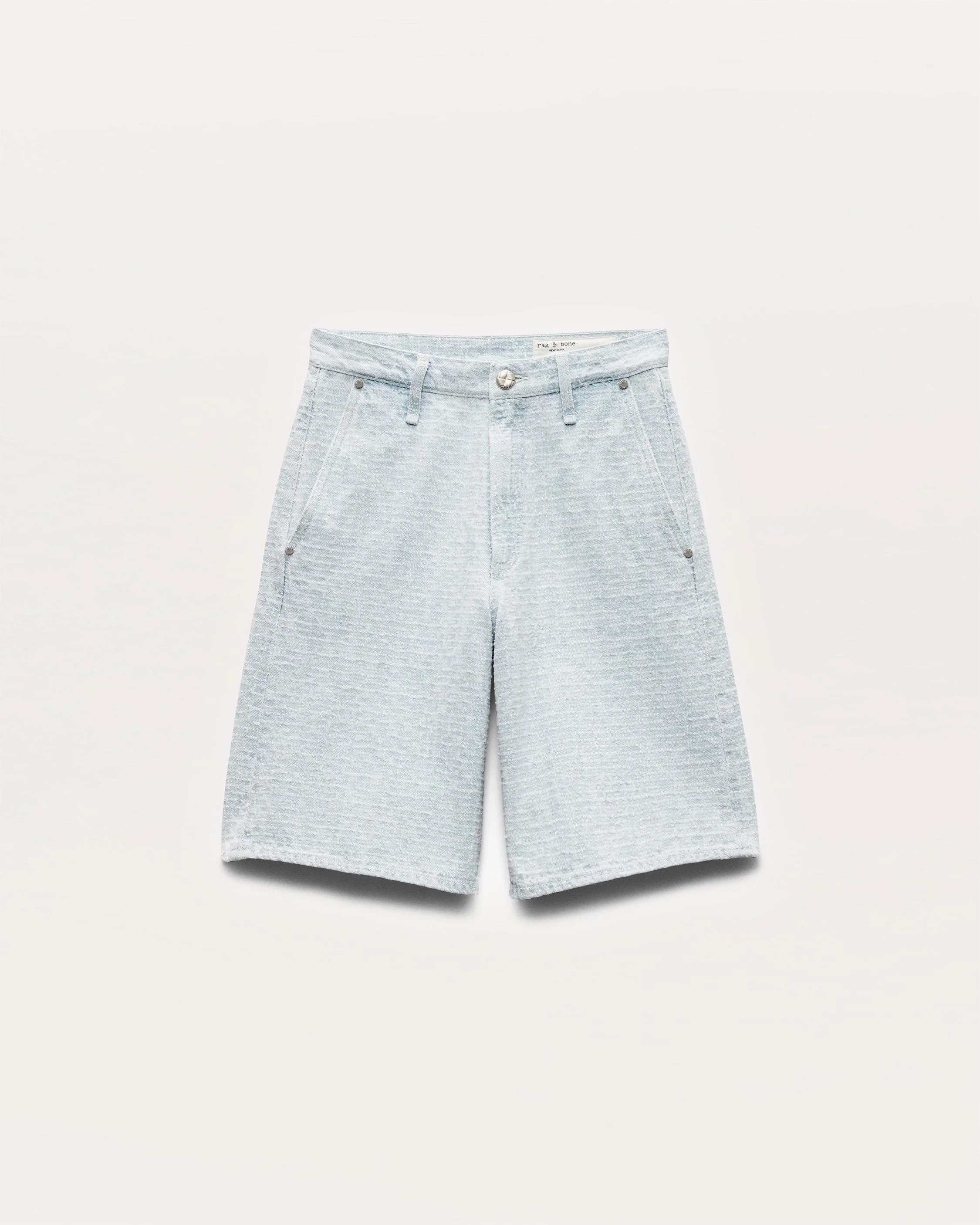 The Tailored McKenna Short. A dressier take on high-rise Bermuda shorts with a relaxed fit, 10.5" inseam, and front slant pockets. Crafted from Lightweight Rigid non-stretch denim that provides structure, but breaks in over time for a soft and comfortable feel. In Sky Blue Tweed, a pale blue with an allover tweed-inspired texture. Size & Fit High-rise bermuda short Size 26: 12 1/2" front rise, 10 1/2" inseam, 24 5/8" leg opening Model is 5'10" wearing size small Features & Details 100% Cotton Machine wash cold inside out with like colors, gentle cycle, do not use bleach, hang to dry, low iron if need, color may transfer Signature braided button at center front with a zipper fly Five-pocket silhouette Imported Product ID: WDD25S1935RGSK