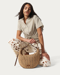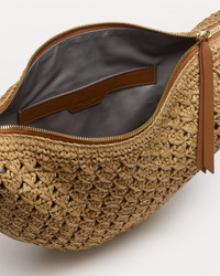 Our iconic hobo bag, reimagined. This sophisticated new interpretation streamlines the original design into a soft, sculptural curve woven from flexible, open-weave straw. The long leather strap features our trio of signature buckles that allow you to adjust its length to sling over your shoulder or wear comfortably across the body. An interior slip pocket helps keep your items organized and easily accessible. Size & Fit • Dimensions: 15" x 5" x 11" • Handle drop: 14.5-20" Features & Details • Body: 100% paper straw • Strap and trim 100% leather • Adjustable strap • Zip closure • Interior slip pocket • Dust bag included • Professional leather clean • Imported Product ID: RF100902