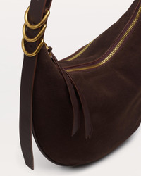 Our iconic hobo bag, reimagined. This sophisticated new interpretation streamlines the original design into a soft, sculptural curve crafted from soft suede. The long strap features our trio of signature buckles that allow you to adjust its length to sling over your shoulder or wear comfortably across the body. A zipped exterior pocket and interior slip pocket help keep your items organized and easily accessible. Size & Fit • Dimensions: 15" x 5" x 11" • Handle drop: 14.5-20" Features & Details • Body: 100% suede • Strap and trim: 100% leather • Adjustable strap • Zip closure • Zipped exterior pocket and interior slip pocket • Dust bag included • Professional leather clean • Imported Product ID: SD100902
