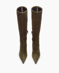 Chic and sleek. These knee-high boots are sculpted for a glove-like fit from soft stretch suede. Pointed toes and stiletto heels complete their slender look, while side zippers make for easy slipping on and off. Inside, dual-layer OrthoLite© foam insoles engineered for optimal stability, support, and comfort ensure they feel just as great after all-day walks around the city as they do during neighborhood strolls. Size & Fit • Leather-stacked heel: 2.95" • Shaft height: 18" Features & Details • Upper: 100% stretch suede • Outsole: 100% leather & 100% TPU • Lining: 100% leather • Rubber toe pod at ball of foot for traction and wear • Zipper closure • Dust bag included • Spot clean or professional leather clean • Imported Product ID: RP0D25H516S
