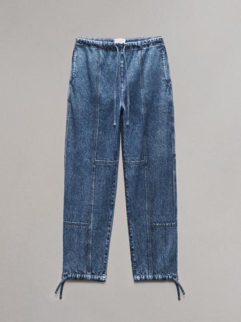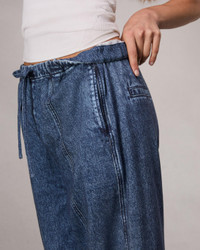 Whether you're getting to know (or already adore) Miramar, our revolutionary printing technique that makes any material look like denim, you'll love it in fleece. Part of our all-new Miramar Fleece collection, these jogger pants are individually cut and sewn from cozy, super-soft cotton fleece that's printed on the outside to look like your favorite jeans. Surprisingly lightweight, with a drawstring waistband, adjustable drawstring leg openings, and side seam pockets, the relaxed style further achieves its comfortable fit and feel with the other denim details digitally printed on the fabric. Size & Fit Mid rise wide leg, full length Size Small : 11 3/4" Front Rise, 30 " Inseam, 16 1/4" Leg Opening Model is 5'10" wearing a size small Features & Details 100% Cotton Pocketing: 100% Cotton Turn garment inside out, use a laundry bag, machine wash cold, do not use bleach, do not tumble dry, lay flat to dry Elastic waist with drawcord, drawcords at leg openings, printed seams and back pockets, unlined Elastic waist with drawcord Onseam pockets Imported Product ID: WCW24H70038203