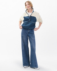 Whether you're getting to know (or already adore) Miramar, our revolutionary printing technique that makes any material look like denim, you'll love it in fleece. Part of our Miramar Fleece collection, this pullover combines plush sherpa with panels of cozy, super-soft cotton printed to look like denim. Surprisingly lightweight, with an elastic hem, a snap-closure collar, and side seam pockets, the oversized style further achieves its comfortable fit and feel with the other denim details digitally printed on the fabric. Pair these with the Miramar Fleece Pull-On Pants for a fresh take on double "denim." Selected by Athena Calderone for The Gift of Style , the author and designer's edit of favorite pieces to give and receive. Size & Fit • Fits true to size • Size small: Body length 24.75", back length 24", chest 48", sleeve length 32.5" • Model is 5'9" wearing size small Features & Details • Body: 100% cotton • Sherpa: 100% polyester • Miramar Fleece, a super-soft cotton fleece fabric with a trompe l'oeil denim print • Snap closure • Sherpa at collar interior, front, back yoke, and sleeves • Snaps at collar and center front • Elastic at hem and cuffs • Side seam pockets • Machine wash cold inside out & lay flat to dry • Imported Product ID: RC6025HSMOT