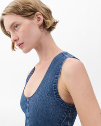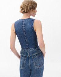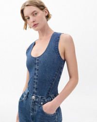 Whether you're getting to know (or already adore) Miramar, our revolutionary printing technique that makes any material look like denim, you'll love it in our bestselling ponte fabric. Part of our Miramar Refine Knit collection, this scoopneck bodysuit is cut and sewn from a soft stretch knit that's printed on the outside for a denim look. Perfectly polished with just the right structure, the close-fit style further achieves its ultra-comfortable feel and slim fit with the seams and denim details digitally printed on the fabric. Size & Fit • Fits true to size • Size small: Body length 23.75", chest 30", sweep 29.5" • Model is 5'9" wearing size small Features & Details • Body: 72% rayon, 23% polyamide, 5% elastane • Pocketing: 100% cotton • Miramar Refine Knit, a ponte stretch knit fabric with a trompe l'oeil denim print • Baby snap closure at crotch • Machine wash cold inside out & lay flat to dry • Imported Product ID: RC6725HSMPO