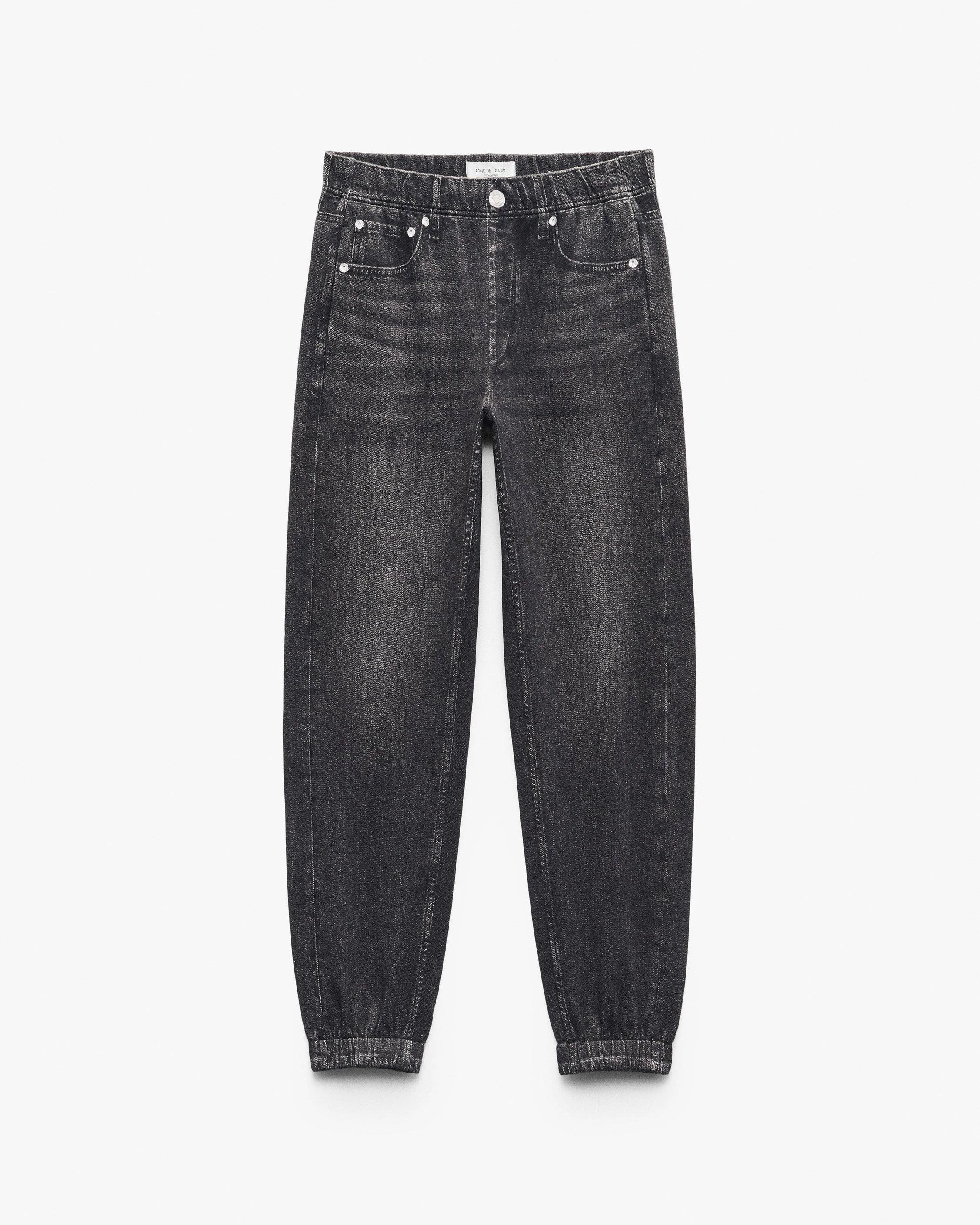 Miramar, our revolutionary printing technique, makes any material look like denim. These jogger pants are cut and sewn from cotton terry cloth that's ultra-soft on the inside and printed on the outside to look like your favorite jeans. Featuring a pull-on elastic waistband and side seam pockets, the slim, mid-rise style further achieves its comfortable fit and feel with the other denim details digitally printed on the fabric. Size & Fit • Mid-rise, slim ankle-length jogger fit • Fits true to size TK For a relaxed fit, size up • Size Small: 10.5" front rise, 28.5" inseam, 10" leg opening Features & Details • 100% cotton • Machine wash cold inside out & lay flat to dry • Trompe l'oeil denim print on terry fabric • Digitally printed zip fly, belt loops, rivets, and rb embroidery • Elastic at waist and ankles? • Pull-on elastic waist?band • Functional side seam pockets • Digitally printed front and back pockets • Imported Product ID: RC1025F7MTE