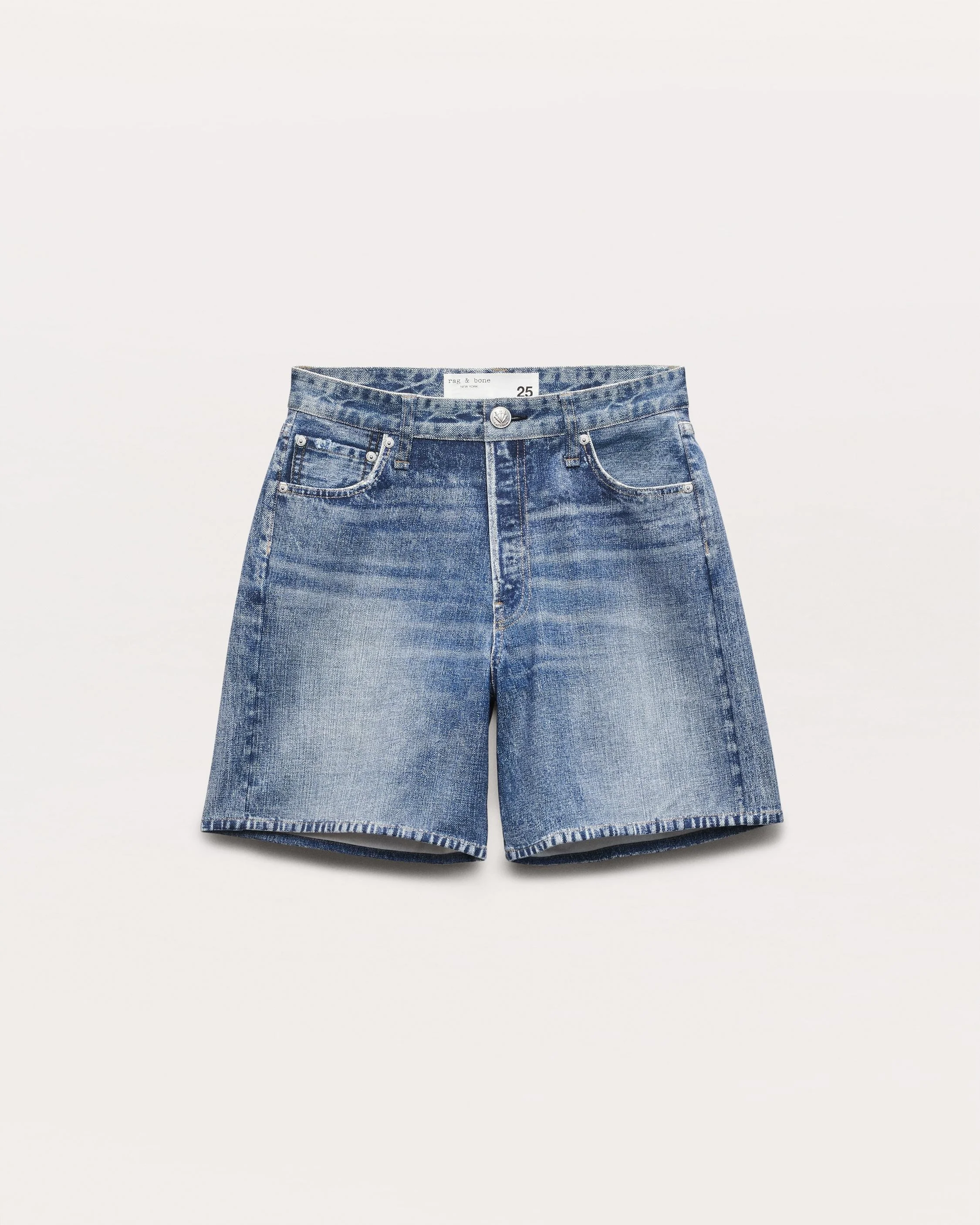 Whether you're getting to know (or already adore) Miramar, our revolutionary printing technique that makes any material look like denim, you'll love it in our bestselling ponte fabric. Part of our all-new Miramar Refine Knit collection, these shorts are cut and sewn from a soft stretch knit that's printed on the outside to look like your favorite jean shorts. Featuring a 6.5" inseam plus functional belt loops, front scoop pockets, and a zip fly with a button closure, the high-rise style further achieves its comfortable fit and feel with the other pockets and denim details digitally printed on the fabric. Size & Fit • High-rise • Relaxed fit • 6.5" inseam • Fits true to size • Size 26: 11.38" rise | 6" inseam | 25.5" leg opening • Model is 5'11" wearing size 25 Features & Details • 72% viscose, 23% nylon, 5% elastane • Zip fly with a button closure • Metal dagger tack button at center front • Trompe l'oeil denim print on ponte stretch knit fabric • Printed back pocket and details • Unlined • Scoop pockets • Machine wash cold & tumble dry low • Imported Product ID: WCW25P90020702