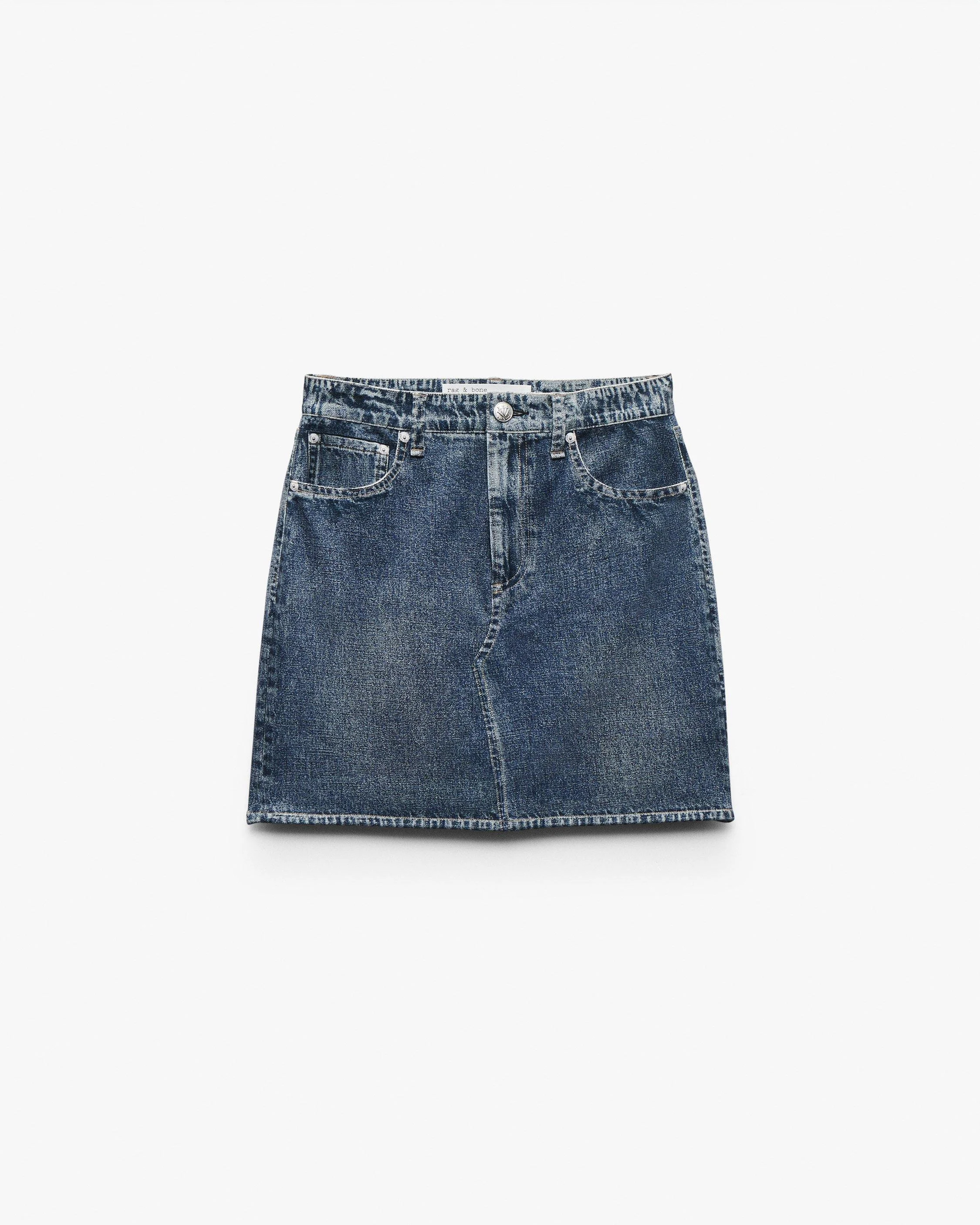Whether you're getting to know (or already adore) Miramar, our revolutionary printing technique that makes any material look like denim, you'll love it in our bestselling ponte fabric. Part of our Miramar Refine Knit collection, this mid-rise mini skirt is cut and sewn from a soft stretch knit that's printed on the outside to look like a jean skirt. Featuring functional belt loops, front scoop pockets, and a zip fly with a buttoned closure, the unlined style further achieves its ultra-comfortable fit and feel with the back pockets and denim details digitally printed on the fabric. Size & Fit • High-rise, pull-on mini skirt • Fits true to size • Size 26: Waist 29.5", sweep 39.25", front length 16.75", back length 16.75" • Model is 5'9" wearing size 24 Features & Details • 72% rayon, 23% polyamide, 5% spandex • Machine wash cold inside out & tumble dry low • Zip fly with button at center front • Real belt loops • Imported Product ID: RC0625FSMPO