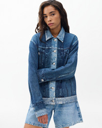 Miramar, our revolutionary printing technique, makes any material look like denim. This trucker jacket is cut and sewn from cotton terry cloth that's ultra-soft on the inside and printed on the outside to look like one denim jacket worn over another. Surprisingly lightweight, with dagger tack buttons down the center front and real side pockets, the oversized style further achieves its comfortable fit and feel with knit details digitally printed on the fabric. Pair it with the Miramar Logan Combo Pants for a fresh take on double "denim." Size & Fit • Relaxed, oversized fit • Fits large to size. Consider sizing down for a closer fit. • Size small: Front length 25", back length 24", chest 46", sleeve length 32.75" • Model is 5'9" wearing size small Features & Details • 100% cotton • Miramar Terry, a soft cotton fabric with a trompe l'oeil denim print • Button-up front • Signature dagger buttons at front and cuffs • Printed rb embroidery at back right pocket • Side welt pockets • Machine wash cold inside out & lay flat to dry • Imported Product ID: RC8425H0MTE