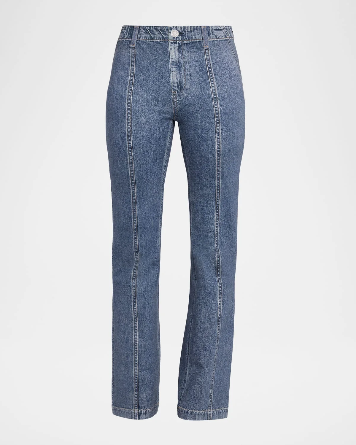 - Rag & Bone "Miramar Ponte" digitally-printed flared jeans in super-soft, airy denim - Approx. 10" rise; 32" inseam - High rise - Elasticized waistband - Side pockets; faux back pockets - Relaxed fit - Ankle length - Button/zip fly; belt loops - Promodal® rayon/nylon/polyamide/spandex - Imported